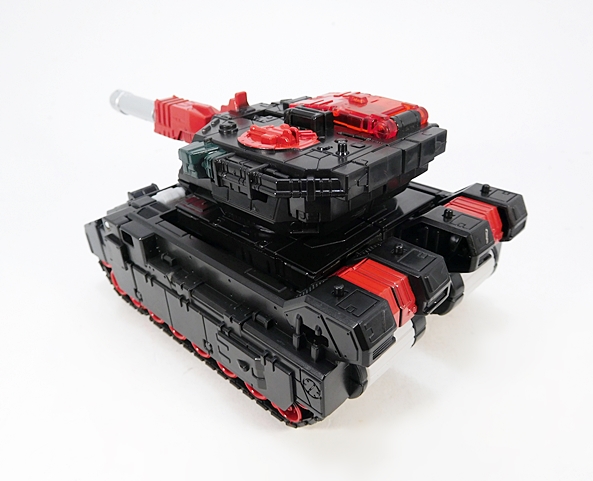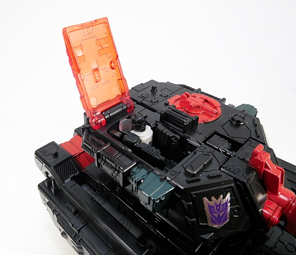 The translucent red hatch on the top of the turret can open and fit a Titan Master, which makes now as good a time as ever to introduce Ominus. He’s cast in black and gray plastic, and is just your typical tiny head robot, albeit with a great name. Alas, there’s no paint on him at all, which really peeves me off on these Leader Class toys. Hey, Hasbro, I spent some real monies on this thing, how about a dab of paint on this robot’s wee little face? Ah well. We have another alt mode to look at…