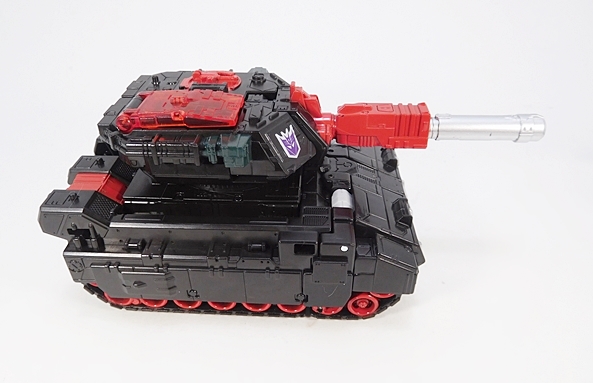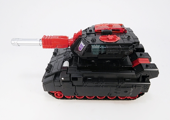 But, with all that having been said, I still really love this little death machine. There’s a ton of sculpted detail on the body, including all sorts of panel lines and hatches. The black body with red trim is a fantastic color combination for a Decepticon and the silver paint on the gun barrel and the two Decepticon insignia stickers are all gorgeous. In fact, I’d say this is a case where the deco carries the day and totally sells this stubby little tank mode.