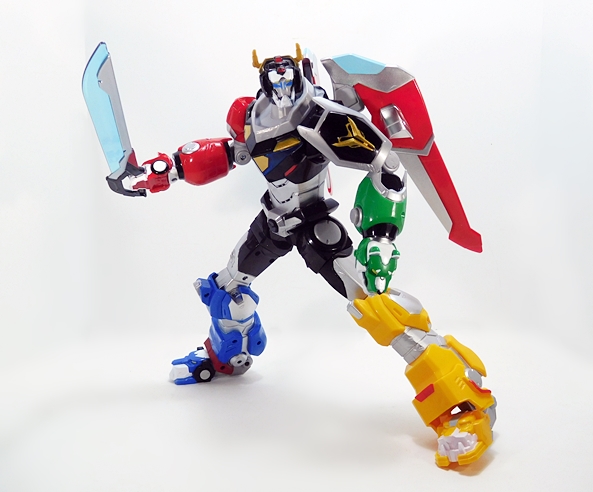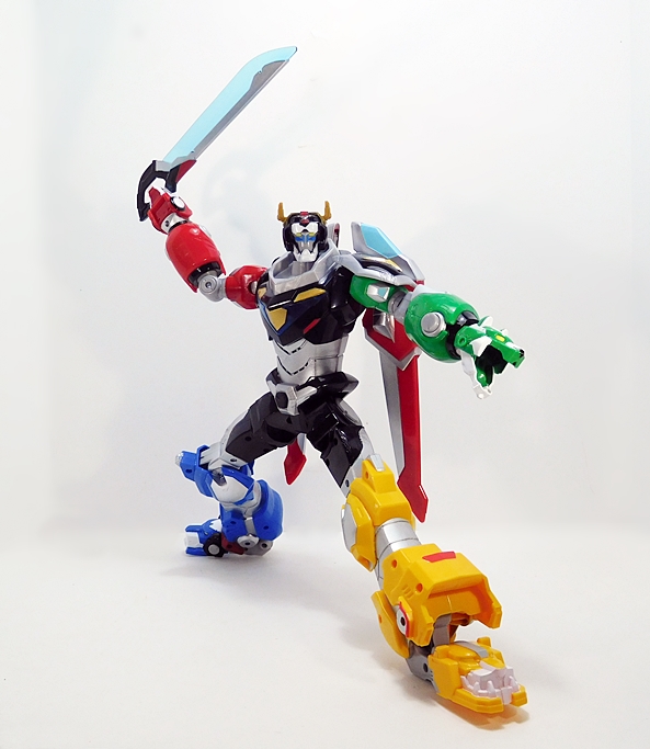 Finally, Voltron comes with his sword. The new sword is probably my least favorite thing about the new Voltron design, but then the original Blazing Sword was a masterpiece. In any event, this one is cast in a relatively soft plastic and features the translucent blade. He can hold it quite firmly in his right hand. Yes, it’s also worth mentioning here that the shield on his left shoulder does not come off.