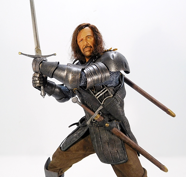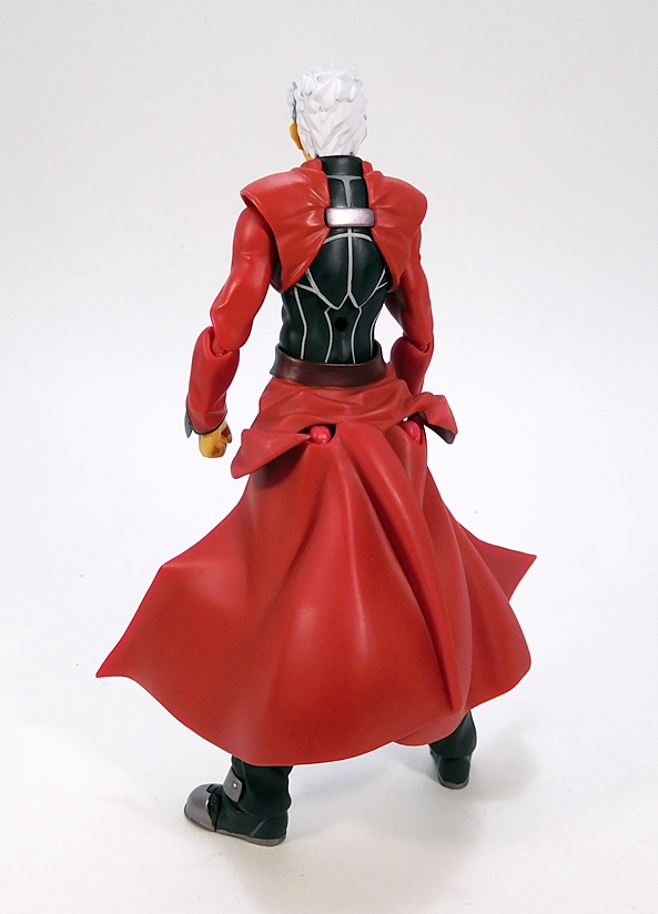 The skirt is cast in two pieces of plastic, each one secured in the back with ball joints. This method allows them to articulate like they’re blowing in the wind or reacting to his movements. It also helps keep them out of the way of the leg articulation. Chances are if you have enough Figmas, you’ve seen this before. It always works really well, and I can’t emphasize that enough. Archer has one of those costumes that really wasn’t made to translate well off screen, but they did a beautiful job with it here.