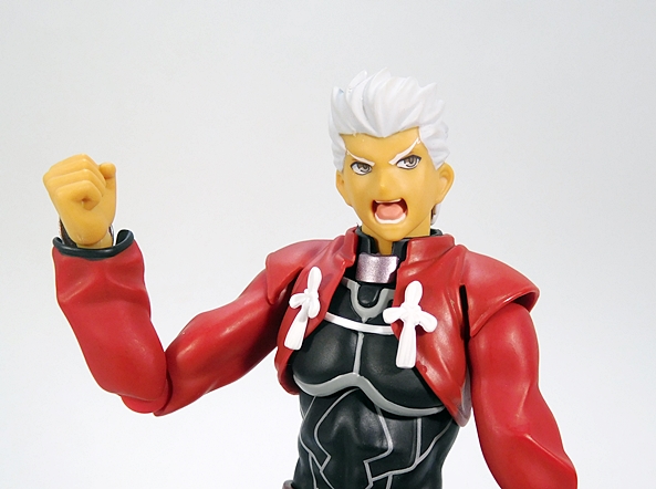 Finally, Archer includes Caladbolg, the sword that he re-purposed as a ridiculously powerful arrow. This is an absolutely gorgeous piece of work from it’s ornate blue and gold hilt to it’s cork-screw silver blade. Max Factory knows how to produce some amazing looking weapons and this is another great example of that. The sword will fit comfortably into either of Archer’s gripping hands, but it’s really meant to accompany his bow.
