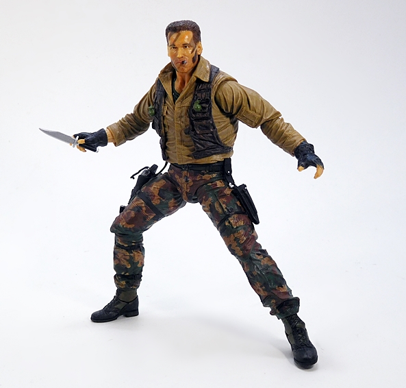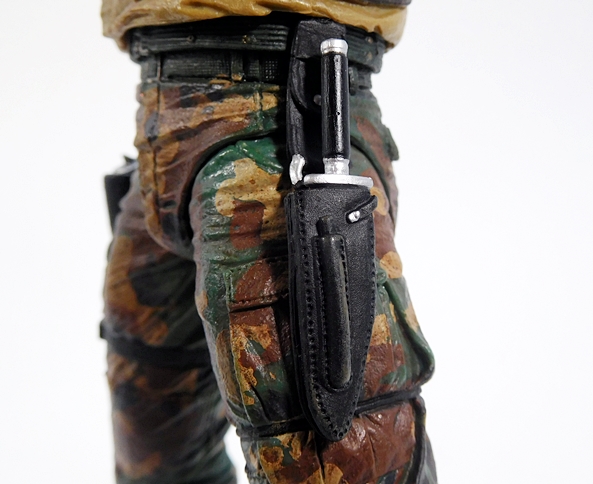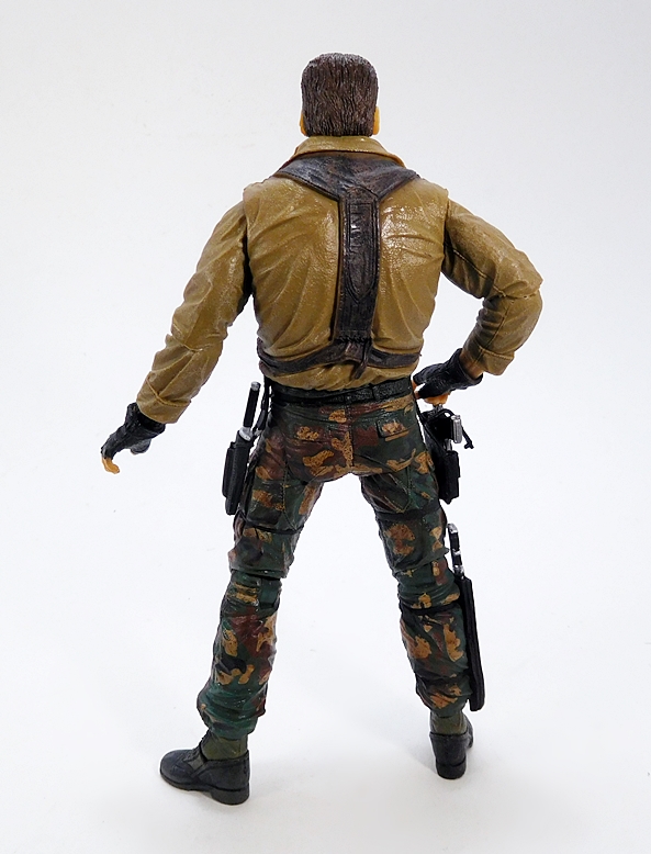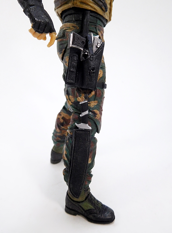 Of course, Archer also comes with his bow, which is elegantly shaped, quite long, and all black. The accessory itself is great, but getting it into his hand was a frustrating affair. The grip doesn’t leave any space between his thumb and forefinger and the plastic used for the hand isn’t very pliable. Thankfully the thin guard plate can be un-pegged from the bow so as not to damage it and I was eventually able to get the weapon into his hand. Getting it out again was just as much the ordeal. It would have been helpful if the bow split into two halves, so you could put one in through the top of his grip and one through the bottom, and then peg them together.