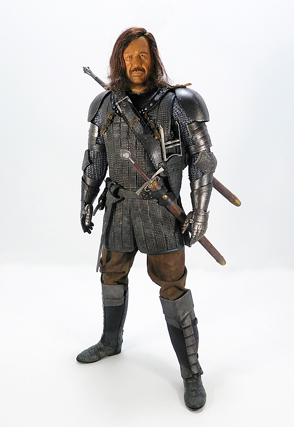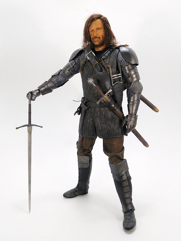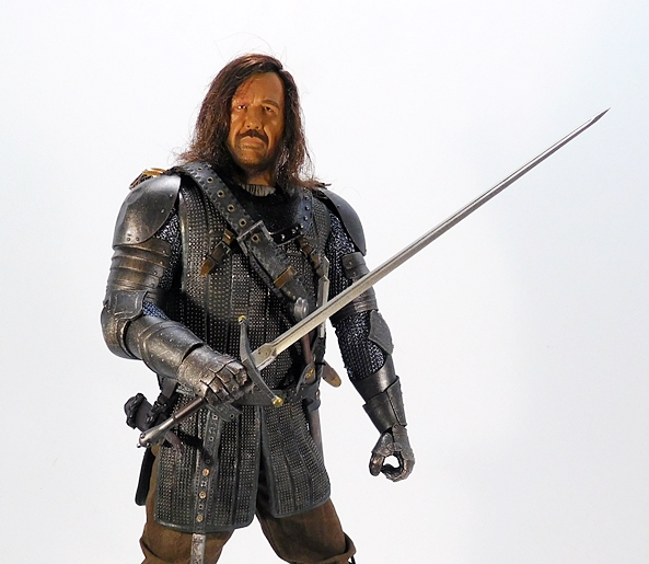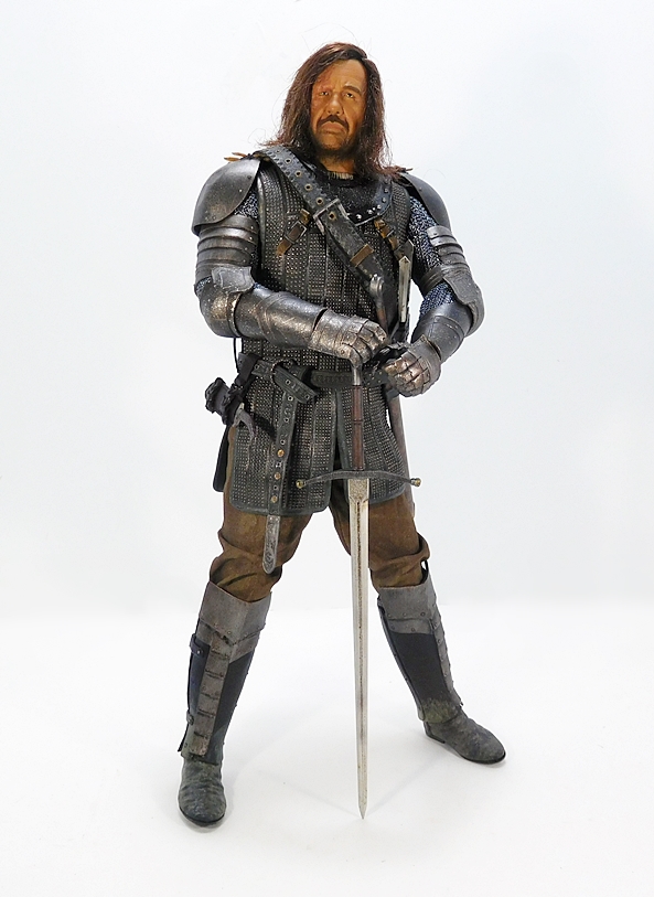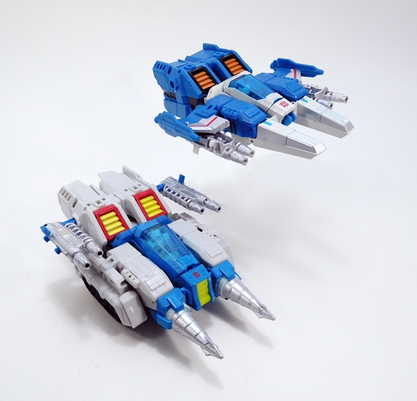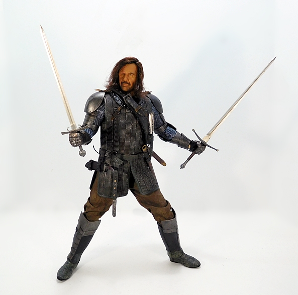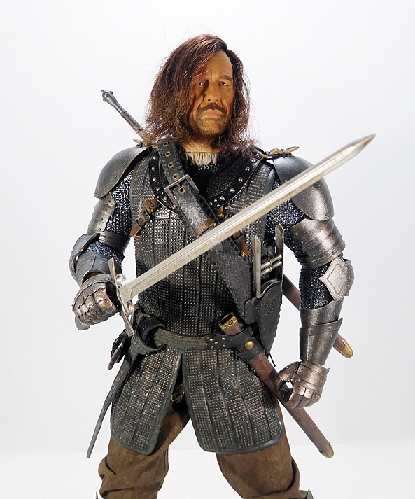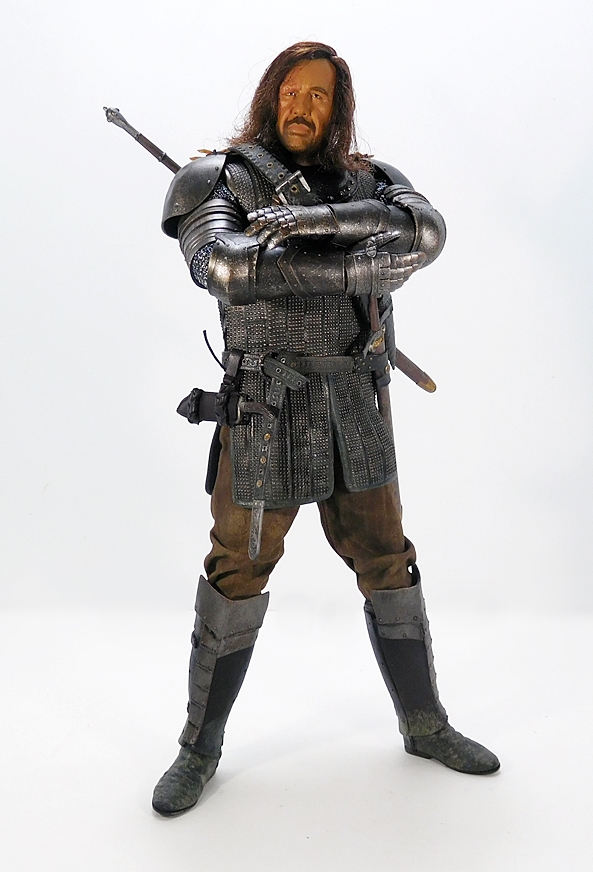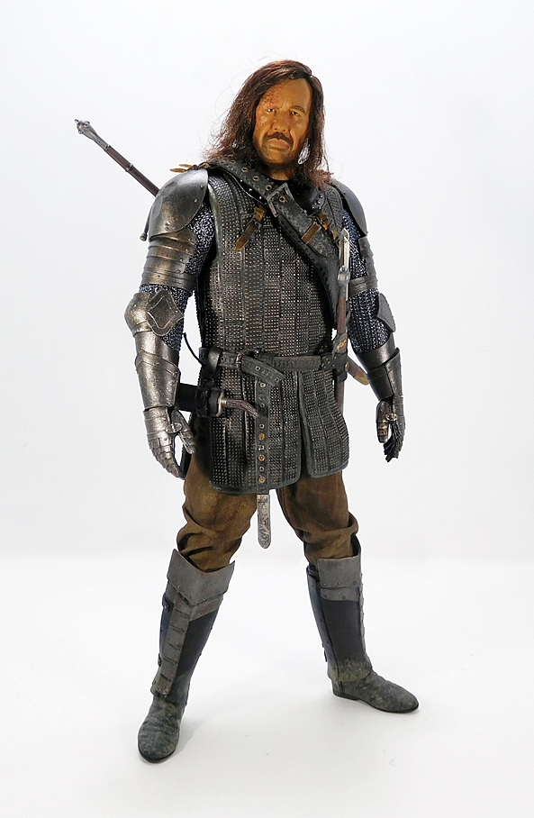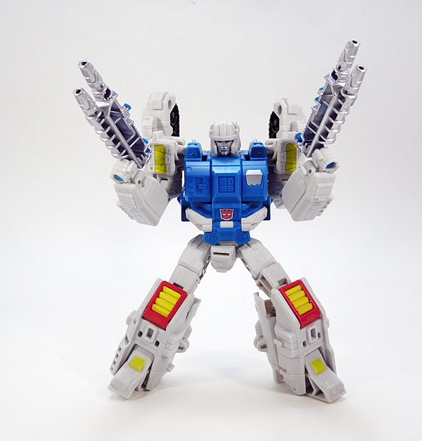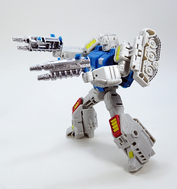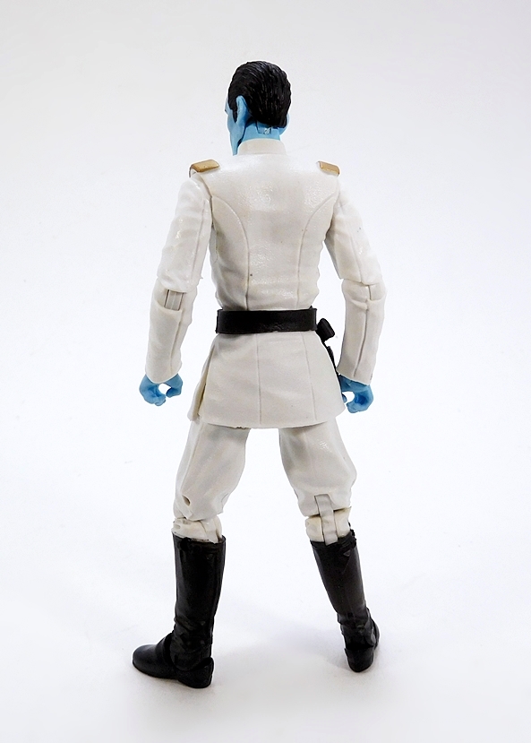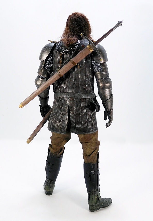 Here he is free of all his protective plastic wrap and I’m happy to say he looks outstanding. I’ve had a thing for crimson trench coats ever since first seeing Trigun a couple decades ago and while Archer isn’t exactly wearing a trench coat, it has the same effect with the billowing skirt that fans out behind his legs. The crimson garment is continued up top with a sort of quarter-jacket over his shoulders and sleeves secured by what looks like a large silver clip on the back. There are also a pair of beautifully sculpted white ribbon ties, which are meant to help hold the two halves of the jacket together on the front. The underlying armor looks great, particularly the silver lining tracing around his chest and back. The belt and armor points on the backs of his sleeves are also painted with a nice silver, as are the armor pieces on his ankles and the toes of his boots. You get some cool straps around his legs, all painted pale blue.