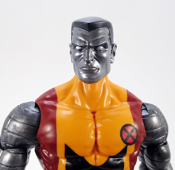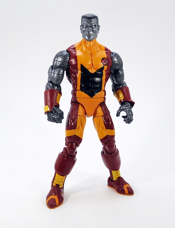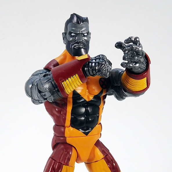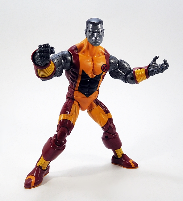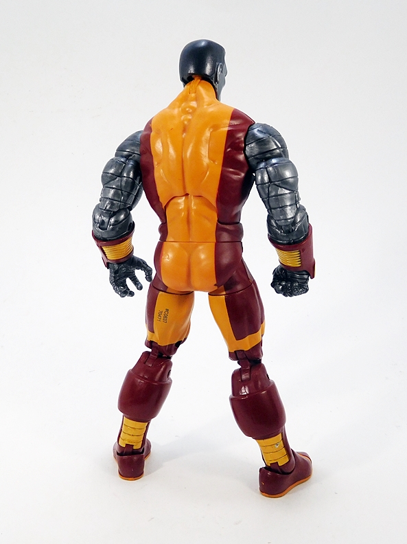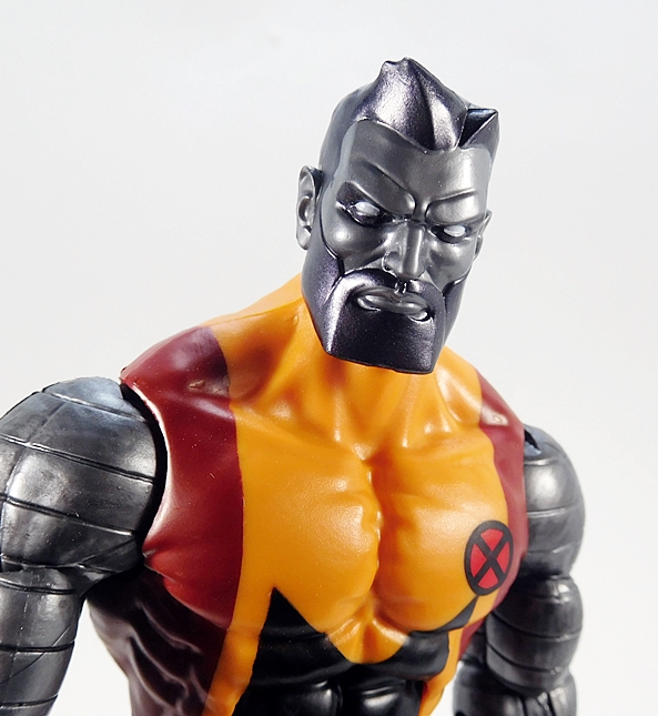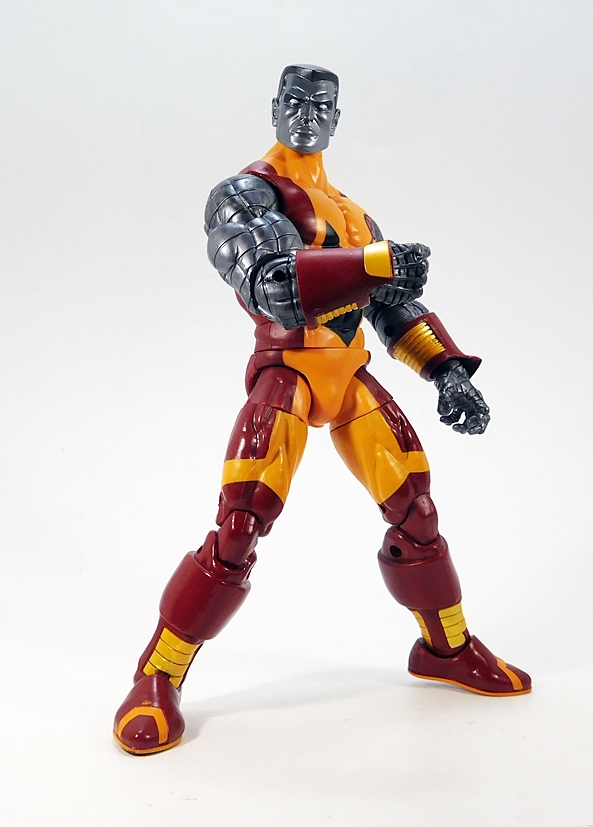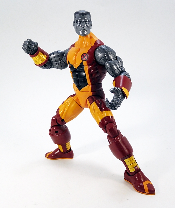 With that having been said, this is not one of my favorite looks for Colossus, but let me just come out and say that it doesn’t stop this figure from being totally amazing. Indeed, I like this one so much, it may be winning me over to this costume. The whole maroon and yellow-orange deco is fine, but I don’t get the big black cut out in the middle. I do, however, dig the powerful looking arm bracers with the ribbed cut-outs and the segmented portions on the front and back of the boots. The paintwork on the costume is pretty sharp, the paint looks great and the subtle orange trim to the boots are pretty cool. Of course, the best thing here is that wonderful blued steel finish Hasbro used for Colossus’ skin. That with the sculpted segmented lines and muscles make this figure a sight to behold.
