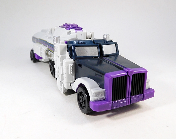 Of the two, the tanker is obviously the “priority” mode and there’s some cool stuff going on here, as well as one thing that aggravates me to no end. No matter how much I try to finesse it and study the nuances of the design, I cannot get the cab to pack together properly. It always feels mushy like everything isn’t seated correctly and there’s always a seam between the two halves of the cab. Most pictures I’ve seen of him seem to show the same problem, so I’m assuming it’s not a case of operator error. With that having been said, it’s a cool looking truck with some solid detail. There are panel lines in the tank, cages on the sides, and little ladders leading up to the doors of the cab. I think what I like the most about it is what you can’t see… the wings are almost totally concealed within the tank.