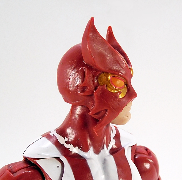 And hot damn, do I love this costume! Shiro sports his full red bodysuit with white striping radiating out from his circular red belt buckle, all appropriately very reminiscent of the Japanese flag during WWII. I’m all over the way the design of this costume reflects the spirit of his backstory so perfectly, as few comic book heroes can make that boast. I’m also pleased to report that the white paint looks bright and clean despite being painted over the snappy red plastic buck.