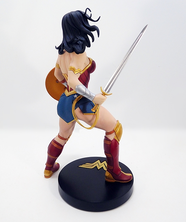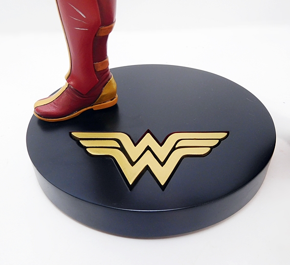 The base is pretty standard stuff. In fact, it’s identical to the one DCC used for the Adam Hughes Designer Statue. It’s a thick black disk with the familiar WW logo sculpted into it and painted in gold leaf. I really dig the way she’s only got the one foot on the base and the other on the ground beside it. It not only accommodates her action stance by allowing that one knee bend, but the fact that she’s only half on the base gives the whole composition that extra little dynamic kick to it. The limitation is noted on the bottom of the base. In this case, mine is #1,024 of 5,000.