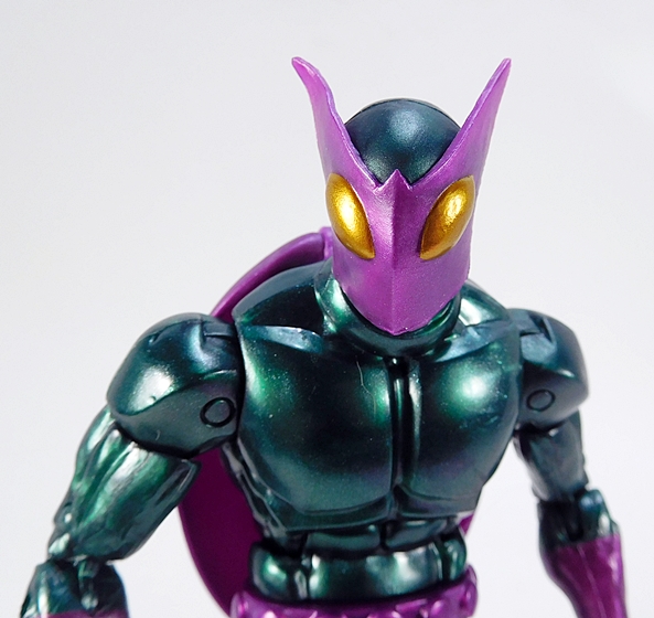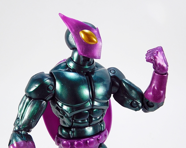 The head sculpt is simple, but really captures that classic comic look. The purple paint matches the rest perfectly and the giant gold eyes really pop.