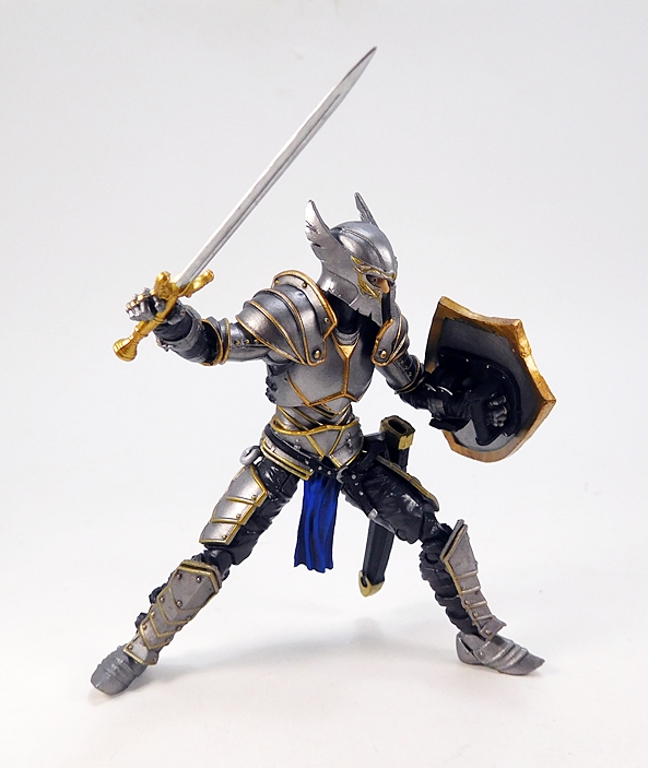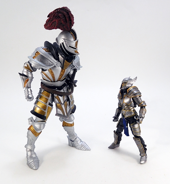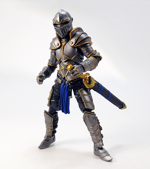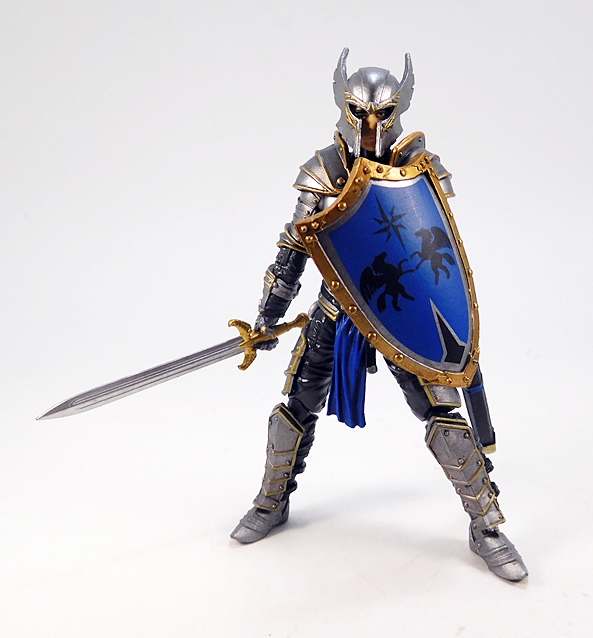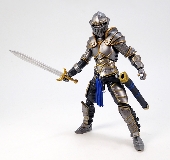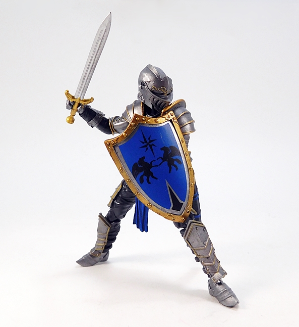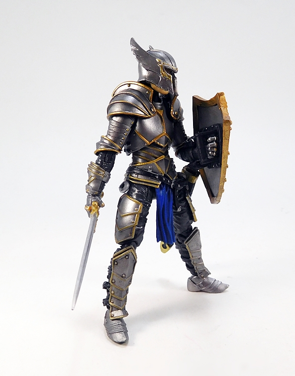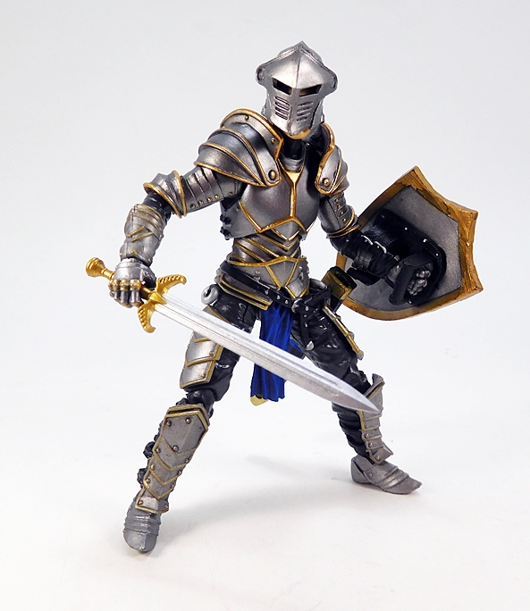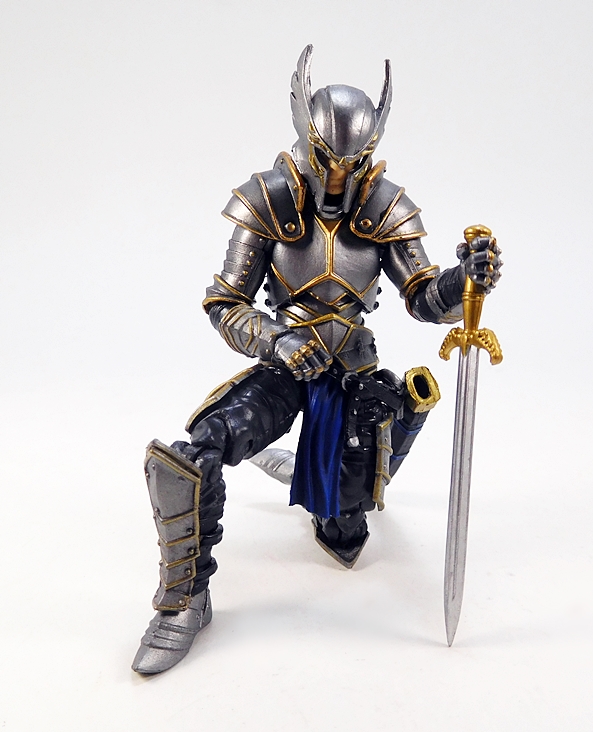 The articulation is virtually identical to the Series 1 humanoids, so let’s run through it real quick. The arms have rotating hinges in the shoulders and elbows, with hinged pegs for the wrists. The legs are ball jointed at the hips, double hinged at the knees, and hinged at the ankles. There’s a ball joint in the torso between the waist and chest, and as mentioned the neck is a double ball joint. The absence of things like lateral rockers in the ankles and swivels in the thighs do hold this Knight back a bit. Also, the legs feel a tad mushy, which was an issue I had with some of my Series 1 figures. So, not perfect, but still pretty damn solid, and I’d say that overall he’s probably more poseable than he should be wearing all that plate armor.