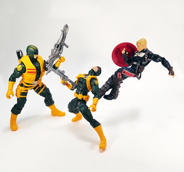 I’ve seen some critical reactions to this set among collectors, including objections to some of the heads, and the vest, but personally I couldn’t be happier. This set not only put a highly sought out figure into my hands, but it gave me lots of cool extras. It may be 100% recycled parts, but this is the kind of creative recycling that I can get behind. Hey, I get that not everyone likes the same thing, so if you bought this set and hate it, feel free to send it to me. No Hydra soldiers will be turned away and I’ll definitely be picking up at least one more of these sets. Now, Hasbro, if you would just throw together an AIM 2-pack that would be most welcome too. You don’t even have to go nuts. Just throw two AIM soldiers in there, repack a few extra weapons, and you can have more of my monies.