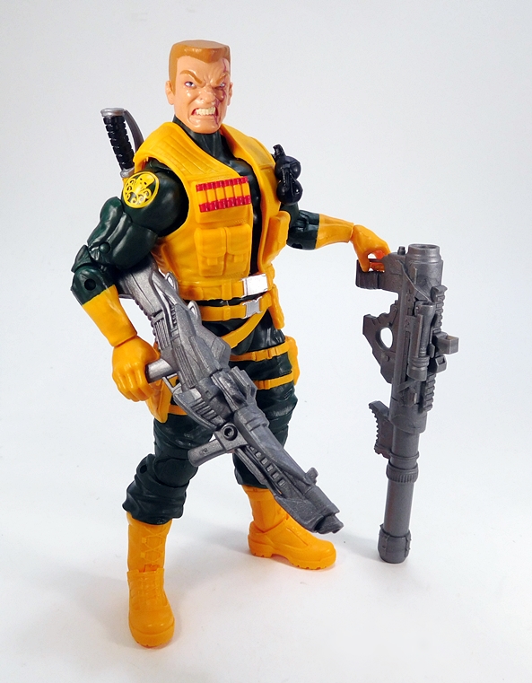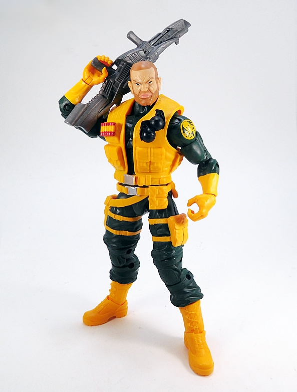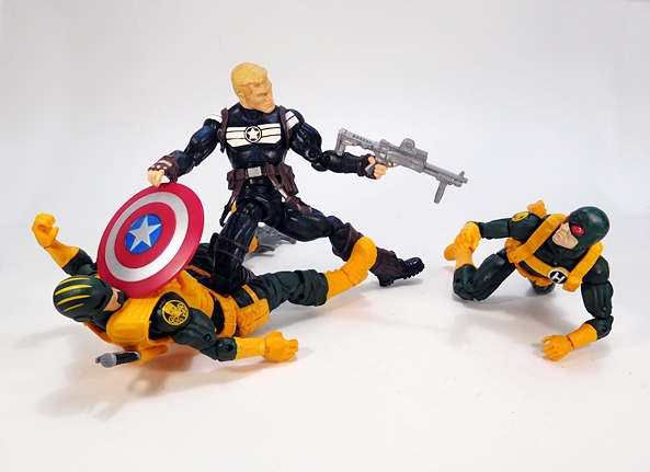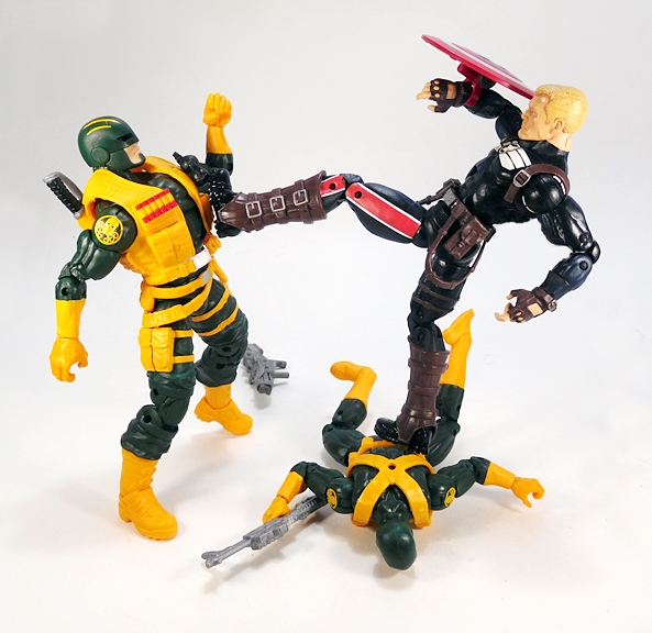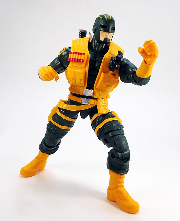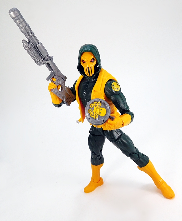 Well, more like a slightly different outfit? OK, dammit, it’s a vest. But it’s a snazzy yellow vest and it can replace the shoulder rig. Holy shit, they dug all the way back to 2013 for this one, as it’s a recolor of Ultimate Cap’s vest from the Hit Monkey Wave! So, I like the way this looks on the figure, I just wish it was branded for Hydra. It does have a little bit of silver paint on the waist buckle, but that’s it. Not bad at all, but unless I get extras of this set, I think I’ll stick with the shoulder rig and the stock head. I will, however, experiment with different looks while showing off his weapons and articulation.