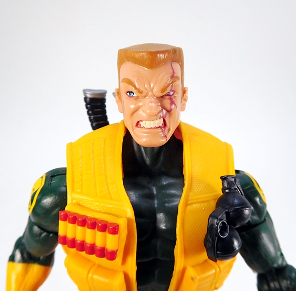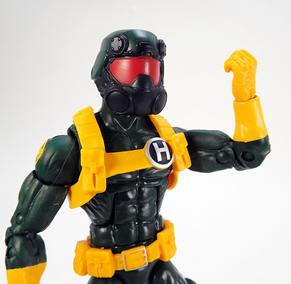 The stock head is a repaint of Captain Britain’s noggin from the Abomination Wave. Yeah, that was a weird choice! The helmet has been repainted green to match the buck and he’s been given yellow stripes on the top. I’m still not sure whether this works for me or not. It has such a strong RoboCop vibe, that it’s hard to unsee that, even on the Captain Britain figure. I also think the serene expression on what is a hero portrait feels off here. I guess I don’t need all my Hydra troops to be slobbering maniacs, but it’s still my preference.