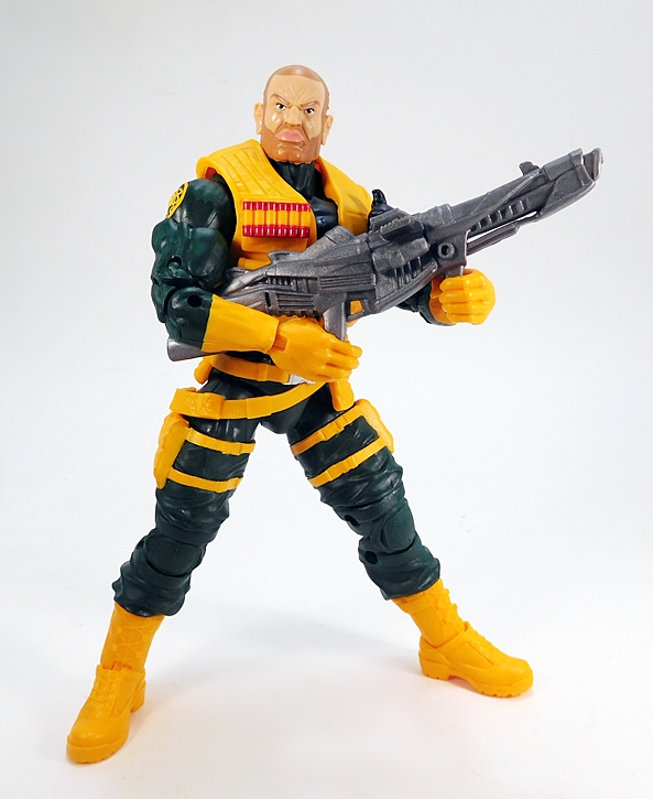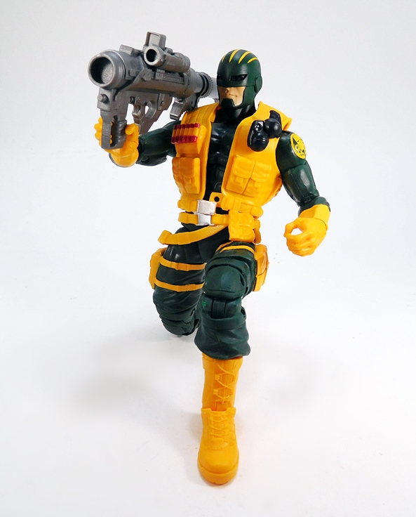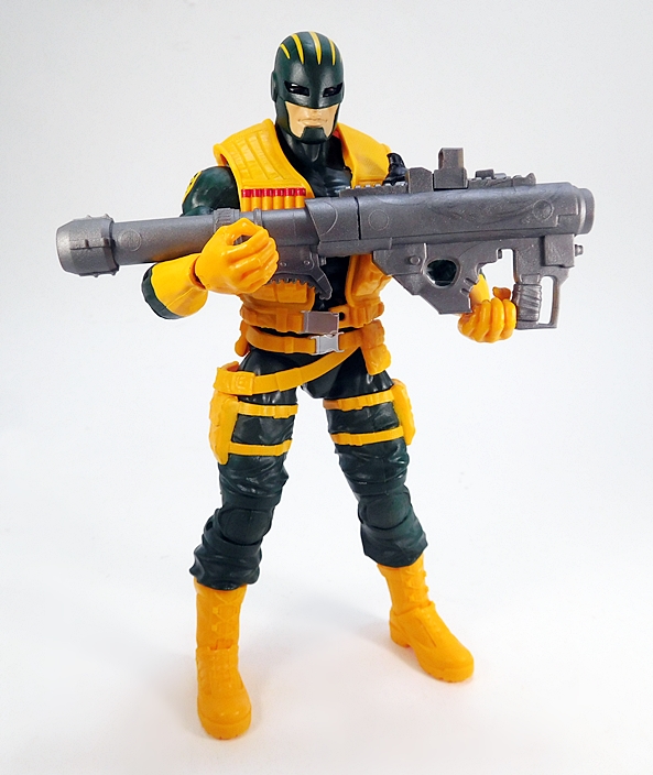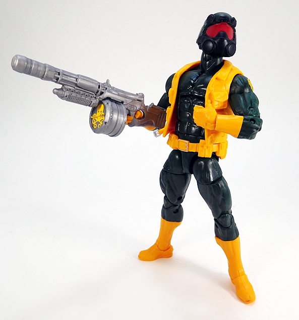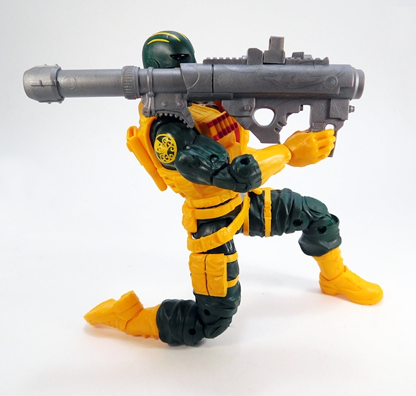 Next, he comes with the bazooka that we first saw included with Drax The Destroyer from the the Titus Wave. This is a really cool sculpt and now it’s cast in gray plastic to match the other weapons in this set. It is a little difficult to get him to rest it on his shoulder properly because of the vest, but I was able to make it work, more or less. This particular weapon really reinforces his role as a heavy weapons expert in my Hydra army.