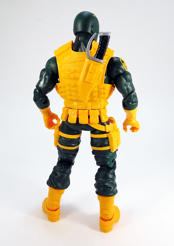 So, this is pretty much the same figure that we saw released in the Mandroid Wave. Like I said earlier, I don’t own that one, but when I compare it to the tear-stained picture that I carried in my wallet for the past couple years, I can’t see any differences. He features a dark green buck with bright yellow boots and gauntlets. Additional sculpted parts include a belt and a shoulder rig, both of which are cast in bright yellow to match his outfit, and both can be removed fairly easily. The belt and rig each include some sculpted pouches, you get a little silver paint on the belt buckle, and the rig has a shield over the left side of his chest painted black with a silver H. I think I would have preferred a red Hydra emblem there, but the H is fine.