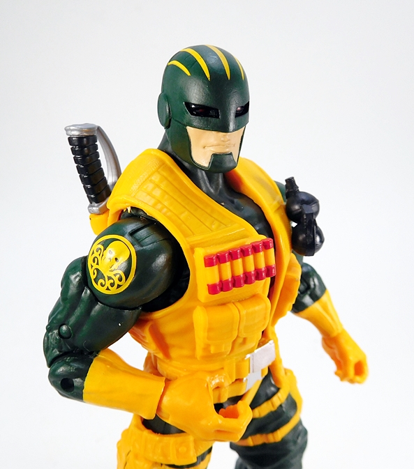 Look familiar? Remember Taskmaster from the Red Onslaught Wave? Well this is indeed his Udon head, and who would have guessed that this would work so well for a Hydra Soldier. Not me, but I sure do dig it. The hood is cast in green plastic to match the uniform and the mask is painted yellow and given some narrow red eyes. Still want more options?