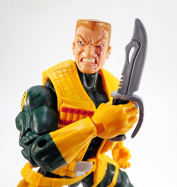 First off, he comes with the same combat knife we saw included with Nuke, and yes it can still be stored in the sheath that’s sculpted onto the back of the vest. I loved this knife back then, and I still do. It’s big and beefy and a really cool sculpt. He can also hold it just fine in either hand.