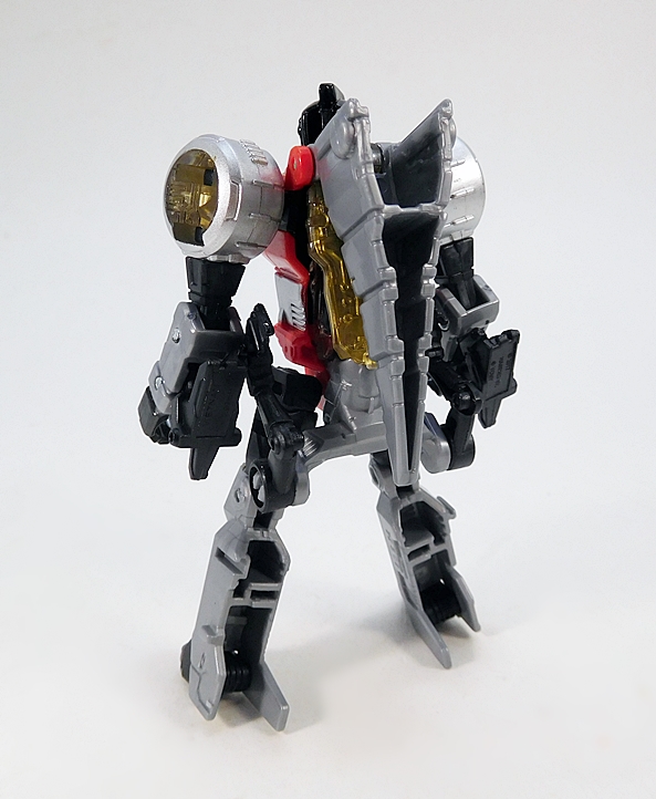 The back portion of the craft beautifully blends the glory of Eternian tech with the fighter’s avian art deco design. You get two large thrusters and two smaller ones in the middle. The sculpt includes vents, tubes, cables, what appear to be some rotating handles for shut-off valves, and even the individual bolts are part of the sculpt. Applications of red, black, and silver paint all help pick out some of the details.
