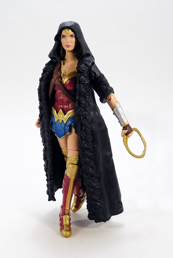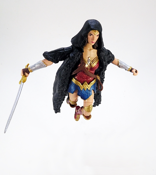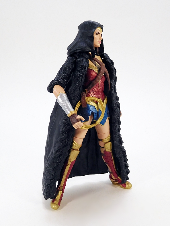 The head sculpt is also unique to this figure, as it features an integrated and non-removable hood. It looks good and allows her to still have working neck articulation, while still convincing me that it’s supposed to be part of the cloak. The overall portrait is OK, but it’s certainly not a great likeness for Gal Gadot. I can see a little of her in there, but it’s fleeting. Also, they seem to have missed the white paint on my figure’s right eye. I’d argue that such lofty goals as good likenesses are too much to expect from a 6-inch mass market line these days, but then I look at some of Hasbro’s MCU figures in Marvel Legends and realize that solid likenesses can be done at this scale and price point. You just have to work harder at it, Mattel.