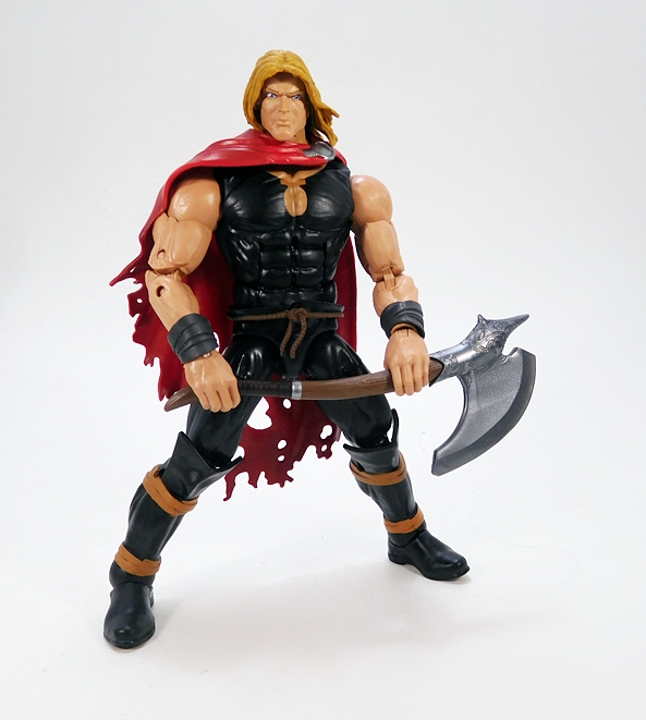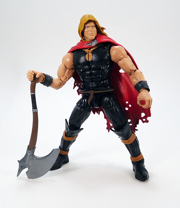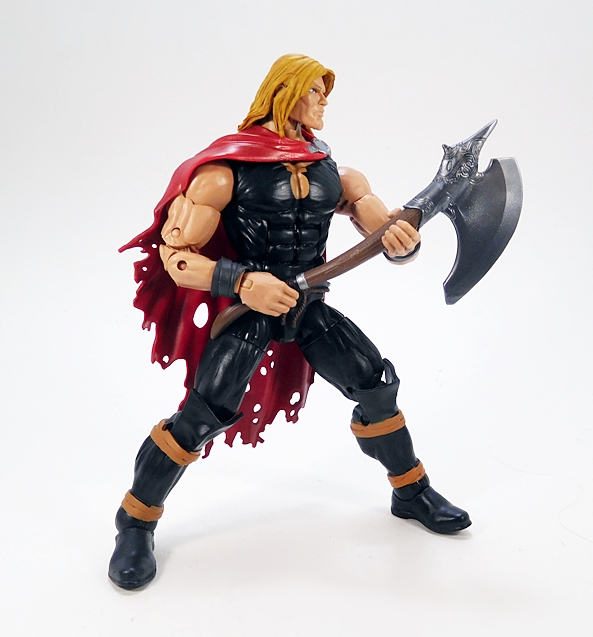 Odinson comes with one accessory and that’s his trusty axe, Jarnbjorn. For a substitute weapon, this thing is beautiful! Hasbro decorated out the axe head’s socket with some lovely scrollwork and an ornate, spiked tip. The curved handle has sculpted wood texture running through it, and grip is ribbed with silver rings at each end. This is one of the most beautiful weapons Marvel Legends has given us in quite a while!