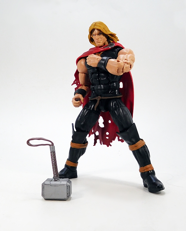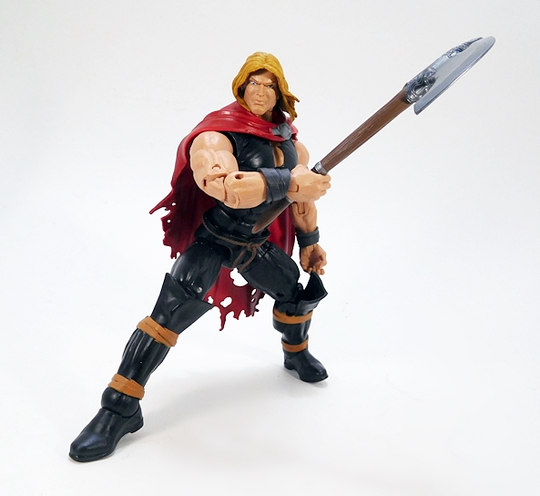 Speaking of heads, this one is a bit of a poser. It genuinely looks fine to me with the figure in hand, but then I take pictures up close and this happens. YIKES! It looks like someone pinched the middle of his face and his eyes are popping out. You ain’t unworthy, you just too ugly! It’s a shame, because the face is very chiseled and angular with some beautiful definition in the sculpt. It looks a little more gaunt than normal Thor, which is a nice touch for hard-luck Thor. The hair is sculpted so that it’s blowing off to the side, which is admittedly a rather singular look, but it works well enough for me. Bottom line is that if you keep a safe distance, it’ll look fine. You’re just going to have to trust me on this one.