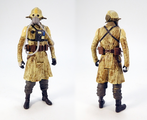 Edrio was one of the aliens that seemed to get featured a lot before Rogue One hit theaters. I assumed he was just going to be another Constable Zuvio, but at least Edrio had some screen time and a few lines. I think he would have made a damn cool 6-inch Black Series figure, but this smaller scale consolation prize isn’t too shabby. Hasbro invested all the usual rumples and wrinkles into the sculpted outfit here and the grimy paint-wash is really well done. And while his name would suggest otherwise, he actually has three tubes, two coming off his face, and one running from the control box into his belt. The chest box is rather reminiscent of the ones worn by the various fighter pilots. Also, the paint and sculpt on his deep set eyes is particularly creepy. I love this figure!