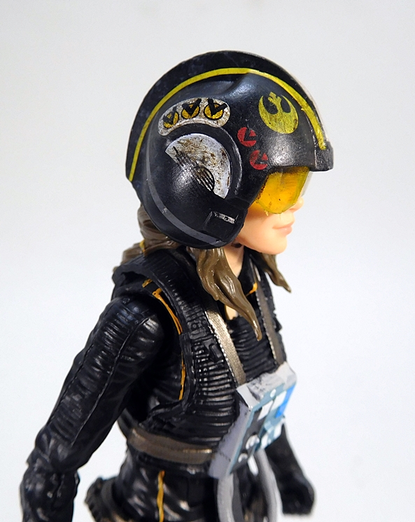 Luckily, Jaina comes with a helmet to help cover up the amateur hour paint-job. Again, the paint on this seems way off from what I remember in the comics. That one was sleeker and had little in the way of colored markings or detail. This one looks more like a Resistance helmet from the current Trilogy. But with that having been said, the paintwork on it is pretty good and I like how worn and weathered it looks. The visor could have been a little cleaner, but hey, all the better to hide her eyes.