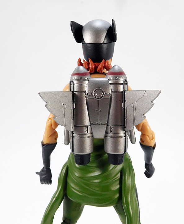 What’s cool about this figure is that the flight gear is easily removable and under it you get an outfit that could pass as just her regular space-adventure garb. Here’s where you can see more of the orange piping on her top, as well as a thin belt with silver belt buckle hiding behind her gunbelt. The gunbelt features some nice detail on the pouches and even some silver paint for the button snaps. The holster fits her blaster quite well, and she also has a hook to hang her lightsaber from.