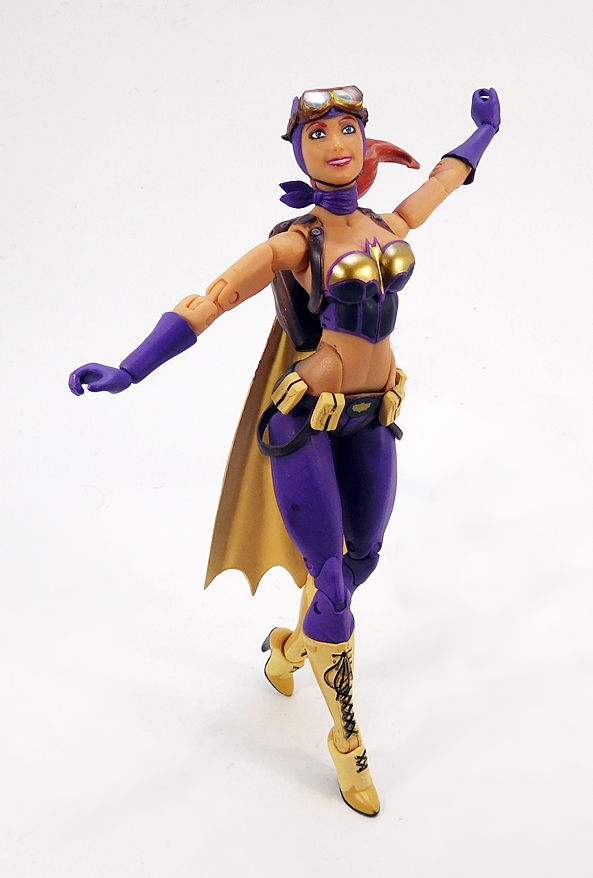 The packaging is that very familiar DCC window box that they’ve been using with all their Designer Series figures. It’s collector friendly, has some great artwork on the side panel and it shows the figure off brilliantly. I’ll confess I was a bit stumped on Batgirl’s design for a while. At first, I thought it was some kind of vintage circus homage, but after actually reading some of the comics, it’s just meant to be an aviator outfit. Oh, yeah, she’s also vampire.