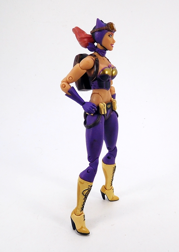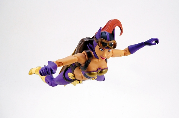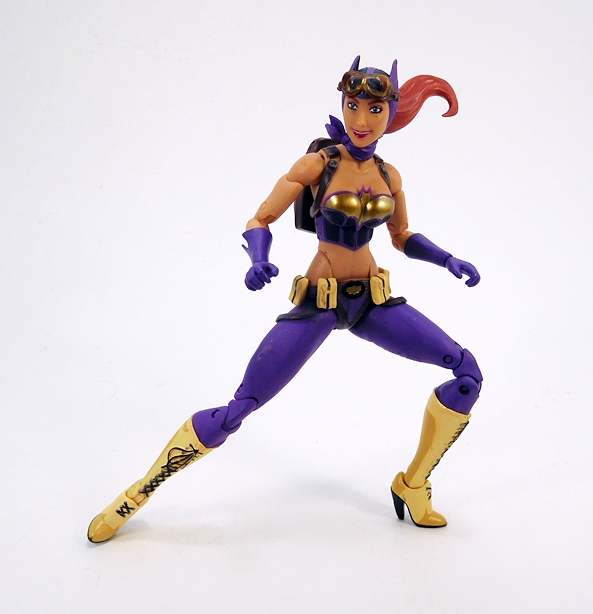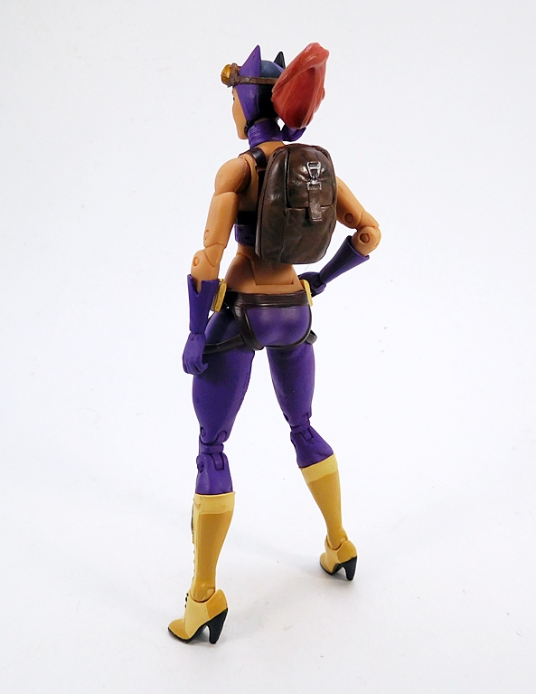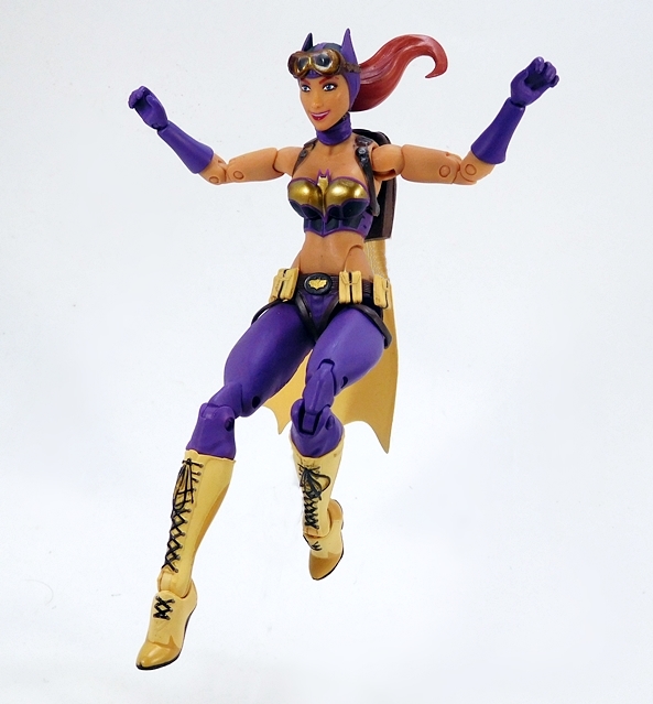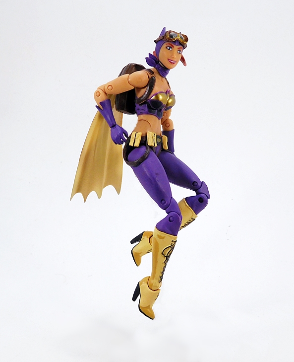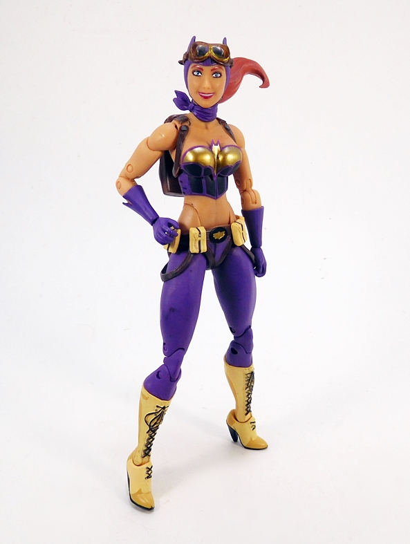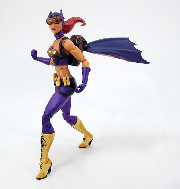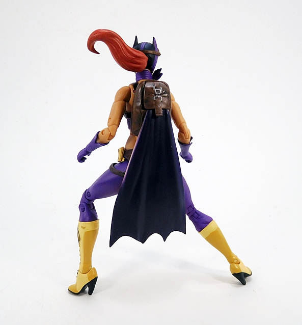 Sculpting and paintwork have never been an issue with this line, and Batgirl carries on that tradition quite nicely. From the waist up, Babs sports a corset-like half-top features a bat-motif, a pair of long gauntlets, and the straps to her parachute pack are sculpted onto the figure. Down below, she’s got a simple pair of purple painted pants, and high laced high-heeled boots. The utility belt got a lot of attention, with a bat-symbol on the belt buckle and various pouches for all her gadgets.