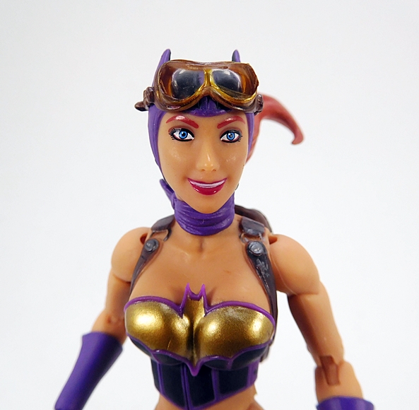 The goggles are a separate piece, which was a great idea, as she can either wear them up on her cowl, or if you want to mimic the statue, you can slide them down over her eyes. They fit the figure perfectly, and I dare say they look as good if not better than what we got on the statue.