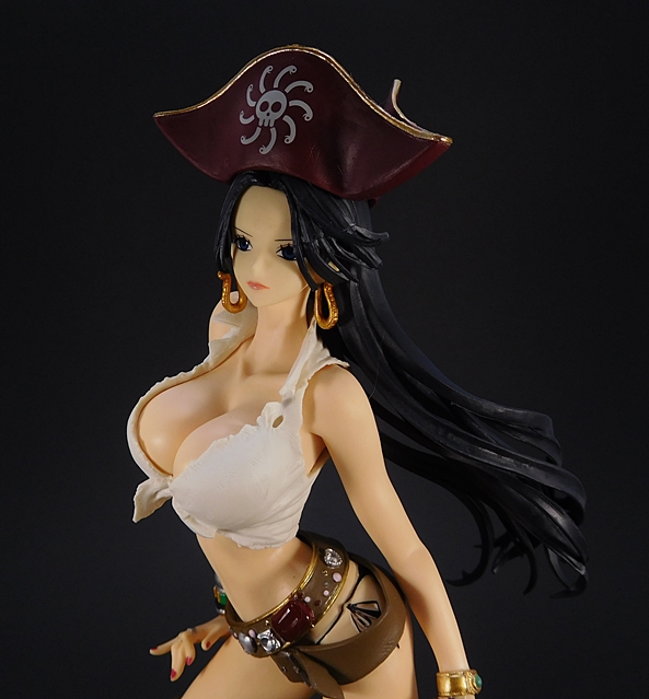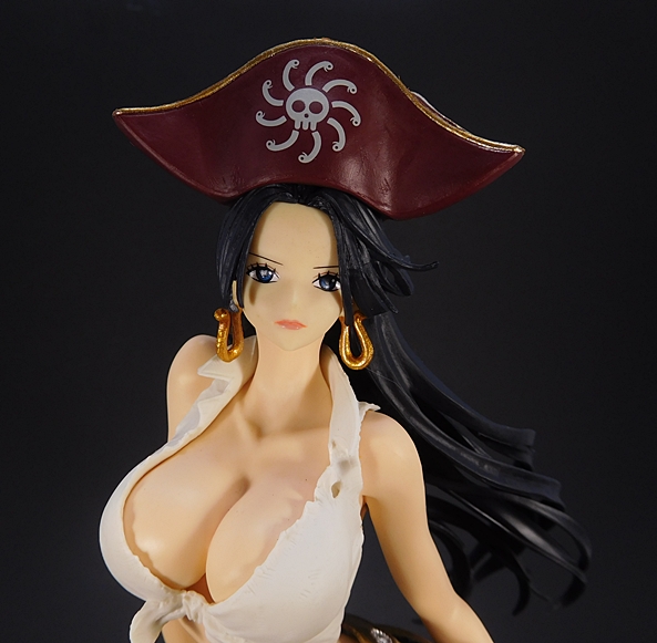 Did you know that one of my favorite pastimes is drinking a bunch of Jameson and trawling the Interwebs for prize figures? Yup, I’m a man of simple pleasures. They tend to be pretty cheap, so I can’t get into too much trouble, but as a rule I keep seeing a lot of the same stuff over and over again so I don’t end up buying a lot. But just often enough something new pops in and surprises me, and last time it was this Flag Diamond Ship series by Banpresto. I call it a series, but I’ve only been able to find two so far, Boa and Nami, and I snapped up both of them pretty quickly. Maybe there will be more, who knows? I want to go straight for the Nami, but since I just looked at her Variable Action Hero a couple weeks back, I’m going to open up Boa today for Anime Saturday!