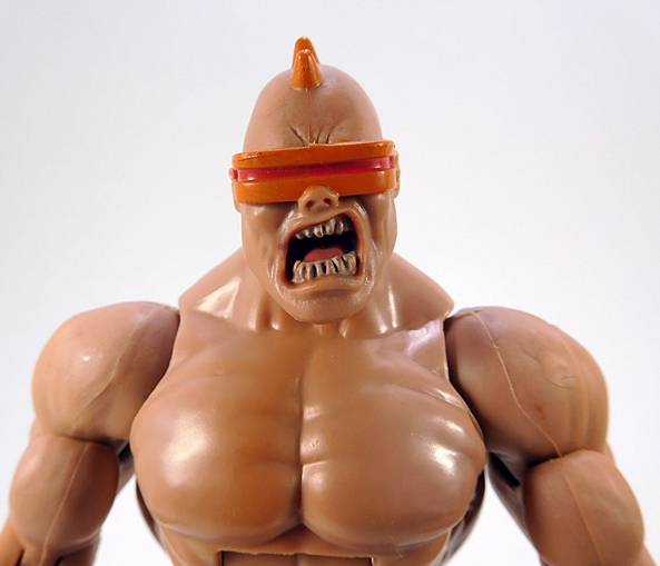 Next up, if you open his jaws up all the way he’s got a double barreled cannon hidden in his mouth. He also has a throat which lets him swallow Titan Masters, sending him to that hellish gut I mentioned earlier where they can be melted away into fuel. But not to worry, Hasbro knows those things cost $5 a pack, so you can open his chest and retrieve them from his stomach compartment easy-peasy. Above we see poor Fracas emerging in the fetal position muttering, “I’ve seen things!” I really love the hazard striping stickers that go around these chambers, even though they were a bitch to put on straight.