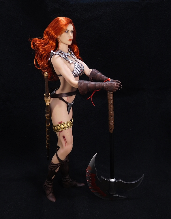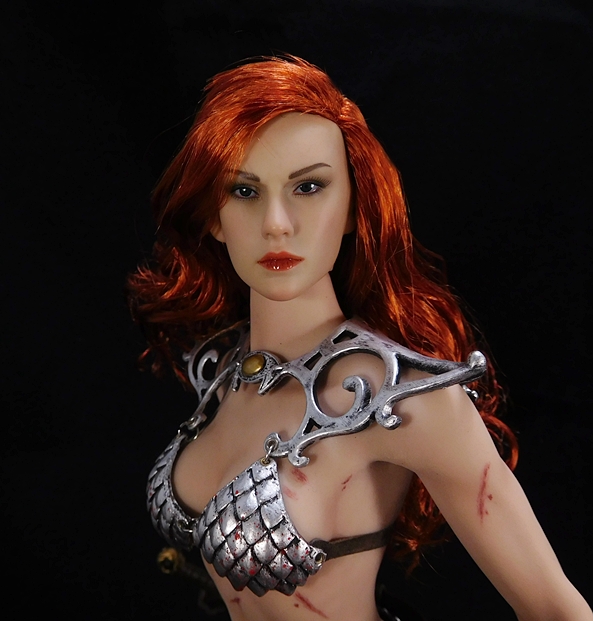 Speaking of heads, Sonja’s got a right pretty one. I think the original release had a decent portrait, but I like this one a lot too. As to which is better? It probably just comes down to a matter of taste. Either way, the paintwork on the eyes and lips is quite good, as are the eyebrows and eyelashes. Phicen isn’t near Hot Toys quality on their faces, but then again these aren’t real likenesses, so they probably aren’t trying to be. As a result, there’s a little more doll than action figure in these heads, but I’m OK with that. The hair color has actually been toned down a bit, some may argue it’s still too bright, but it’s definitely not as electric as the first release. Again, I dig it just fine. It comes with some product in it to keep it from going all crazy, and I found that it isn’t too hard to keep under control. One nitpick I will grant is that her rather serene expression doesn’t lend well to action poses, but I don’t think we’ll see a point where they start including alternate heads, because quite frankly these boxes are stuffed with enough goodies as it is. Besides, I tend to display my Sixth-Scale figures more in the museum-style, so this expression will do nicely. Let’s move on to the accessories!