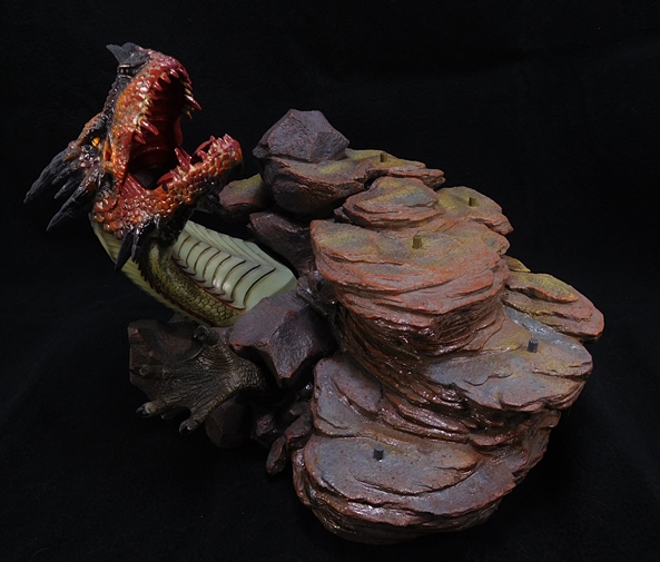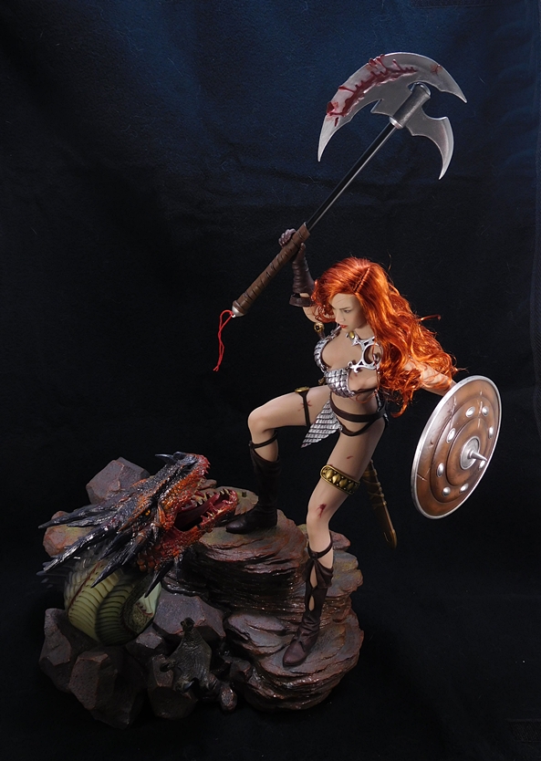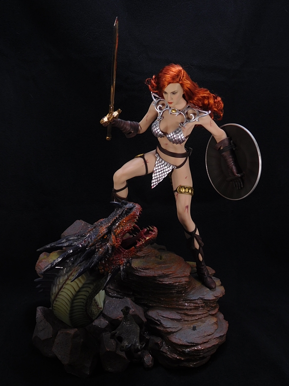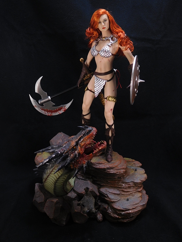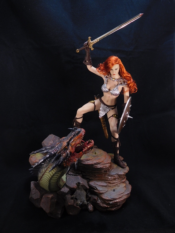 Yes, the Deluxe version of Red Sonja comes with this stepped rock base with a dragon’s head and right claw rising up out of it. This thing is outrageous. I literally could not believe it when I took it out of the styrofoam. It’s crazy heavy and the sculpting and paintwork are absolutely superb. It requires a little bit of assembly, the dragon neck plugs into one slot and the claw into another. I can’t get over all the detail in the dragon’s mouth and the intricate scales.