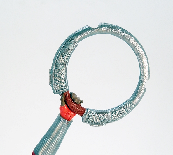 In addition to the BAF parts, Nakia comes with a pair of Chakram, which as far as I knew were generally from India, but I’m not going to quibble about it because they’re exotic and cool and movies often play it fast and loose with historical authenticity. Anyway, these are beautiful accessories, with brown textured grips to simulate wood or leather, and silver blades with decorative inscriptions scultped into them.