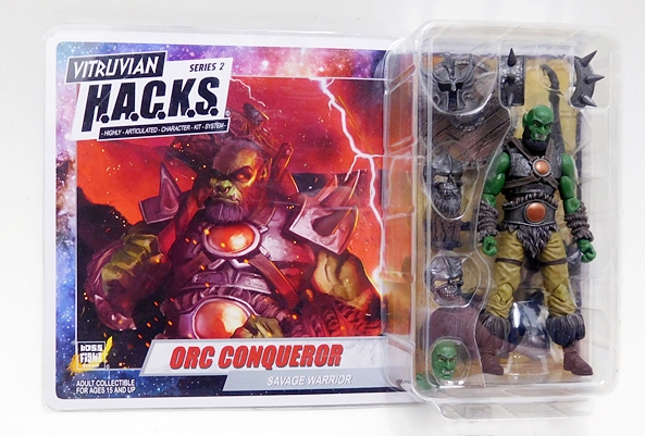 While I may be almost caught up on Mythic Legions, I’m still swimming in Vitruvian HACKS figures, both from Series 1 and 2, that are waiting to be opened and reviewed, so I thought I’d end the week dipping back into the fantasy-inspired Series 2 with the last figure I have to review from the first wave. Let’s check out the Male Orc Conqueror!