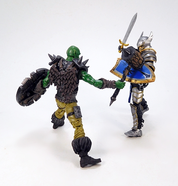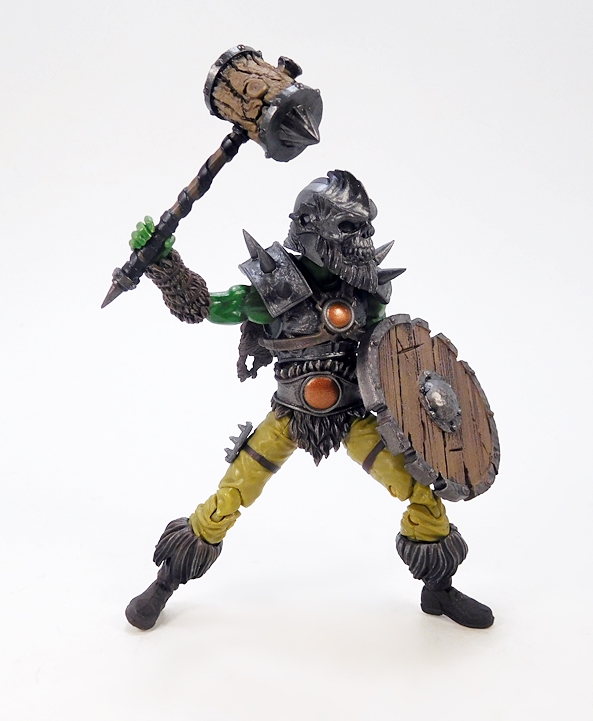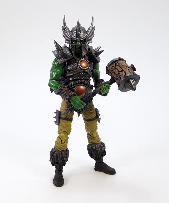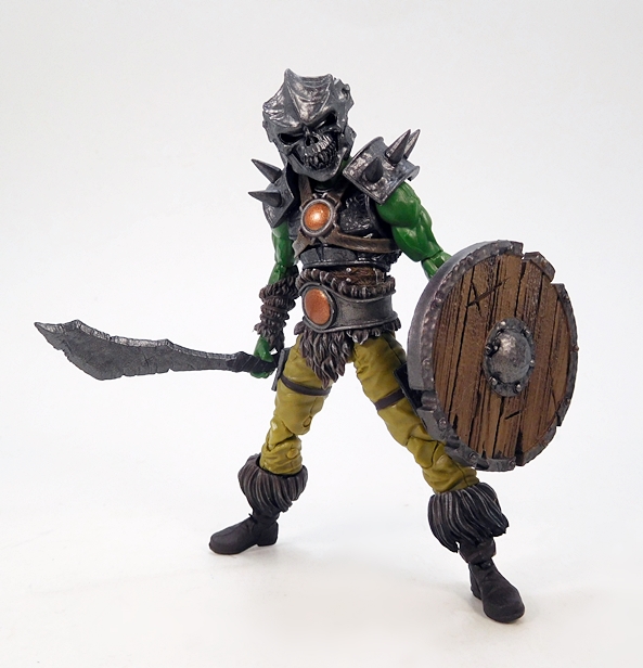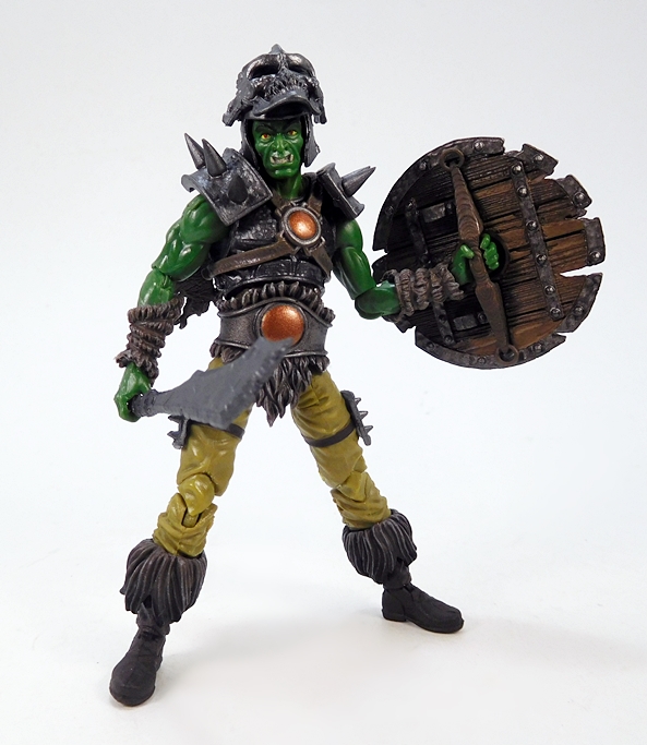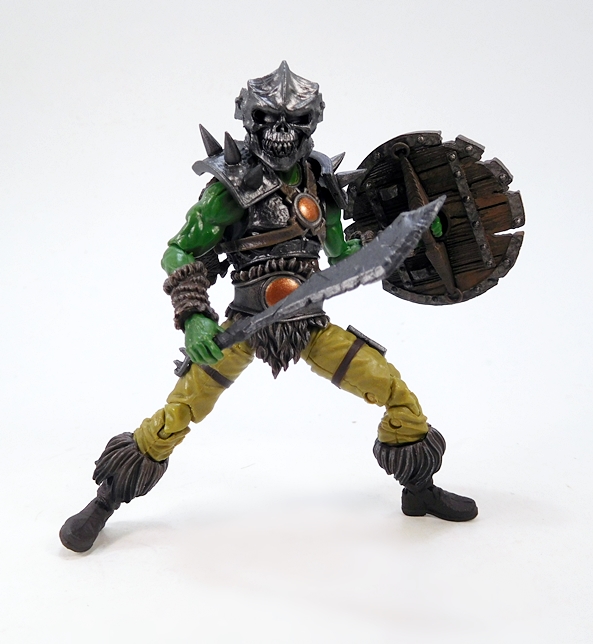 Here’s Mr. Orc out of the package and stripped down to his bare essentials. Unlike the Series 1 figures, which featured separately sculpted outfits, the bulk of the Orc’s outfit is sculpted as part of the buck. This includes the chest and back plate, which has a cool hammered metal finish, sculpted olive green trousers, and the basic boots. Articulation, however, remains unchanged from the Series 1 figures, and while I would really like BFS to add swivels in the thighs, what we get here is still plenty good.