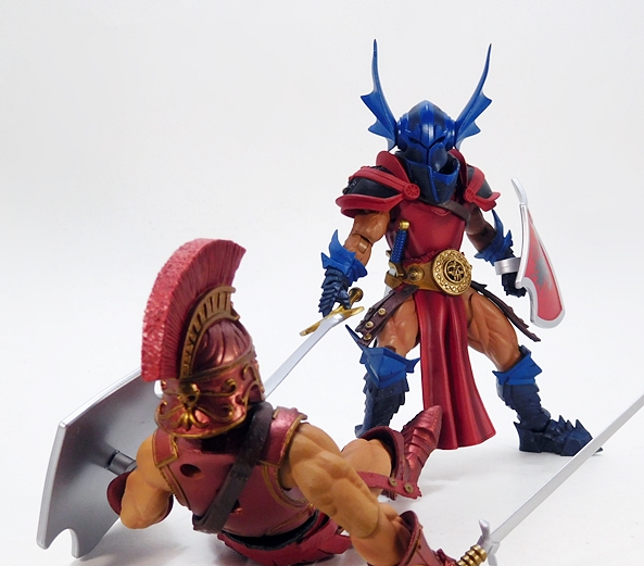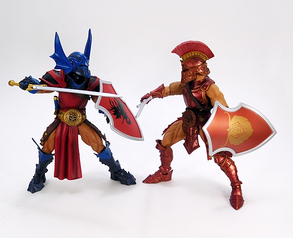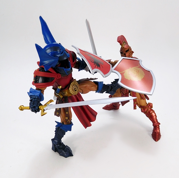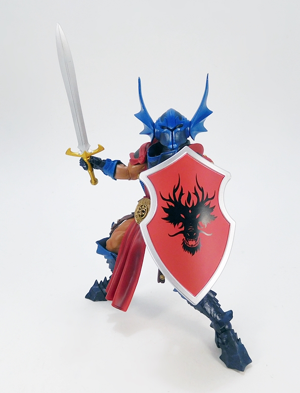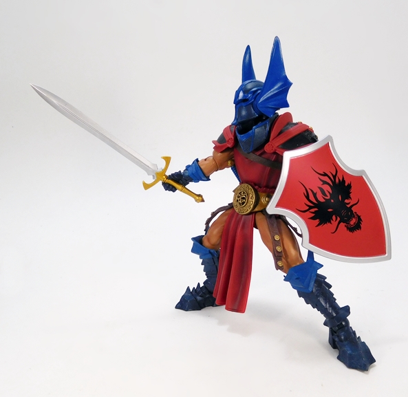 Finally, Raygorr comes with the typical Mythic Legions shield. The shield includes a pegged wrist clip, so you can angle the shield however you want and independent of the position of the arm. The border is painted silver with a red front surface and a black dragon emblem to advertise Raygorr’s nickname. The accessories here are all great, but it’s worth pointing out that these figures typically come with one more big weapon, like a spear, battle axe, or extra sword. But I’ve got a lot of extra weapons from this line if I really wanted to give him something else, so I’m not complaining.