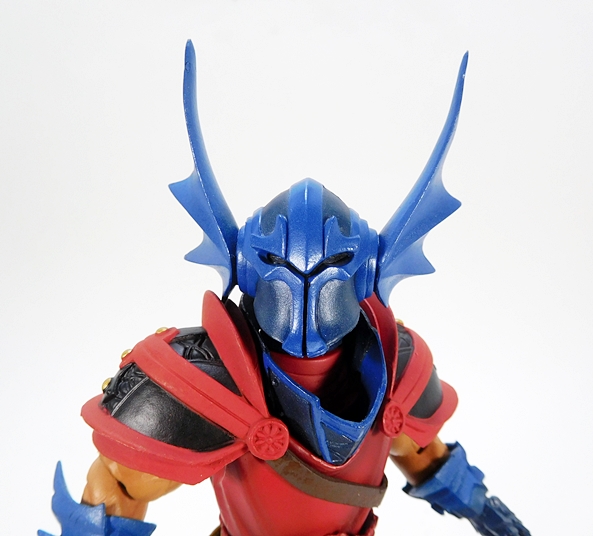 The other option are these bitchin’ wings, and these are what I’m going to go with most of the time. There’s something about this look that just sings to me. I think it makes him look like both royalty and a mighty warrior. Almost like some kind of Duke of War. Hmm… Anyway, the two tone blue coloring on the helmet really looks fantastic. Personally, I would have given him a couple of red eyes peering out from the black void of an eye slit, but either way, this head sculpt just looks grand.