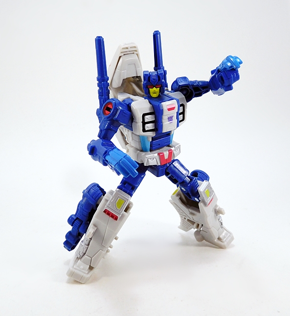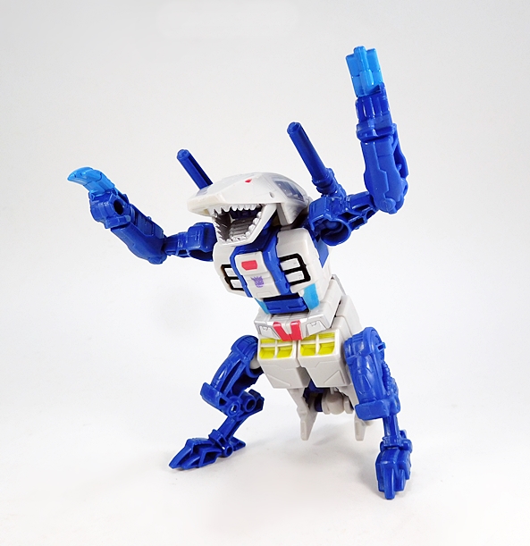 The Berzerker can hold the swords perfectly and he also comes with an extra pair of hands so you can have the wrists hinges bend side to side or forward and backward. Oddly enough, he also comes with the usual pegged figure stand, which he obviously can’t use because he has no feet. Some may scoff at the fact that he doesn’t come with more accessories, but with how much extra plastic goes into the tail, I think it all works out in the end. I will confess that I will probably end up giving him a spear.