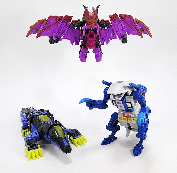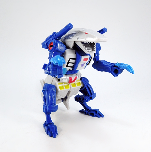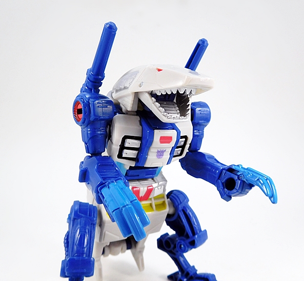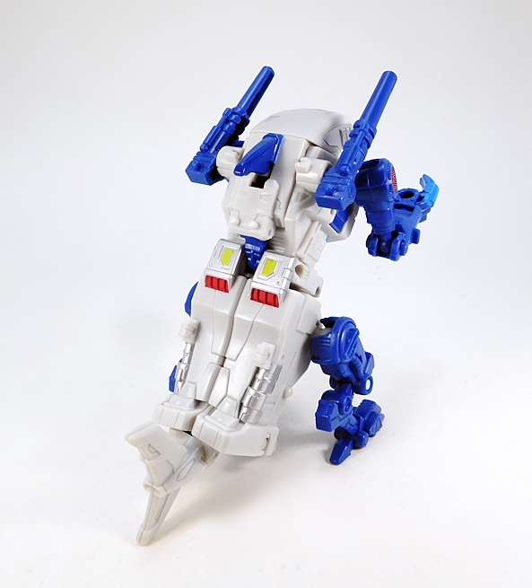 The Berzerker can hold the swords perfectly and he also comes with an extra pair of hands so you can have the wrists hinges bend side to side or forward and backward. Oddly enough, he also comes with the usual pegged figure stand, which he obviously can’t use because he has no feet. Some may scoff at the fact that he doesn’t come with more accessories, but with how much extra plastic goes into the tail, I think it all works out in the end. I will confess that I will probably end up giving him a spear.