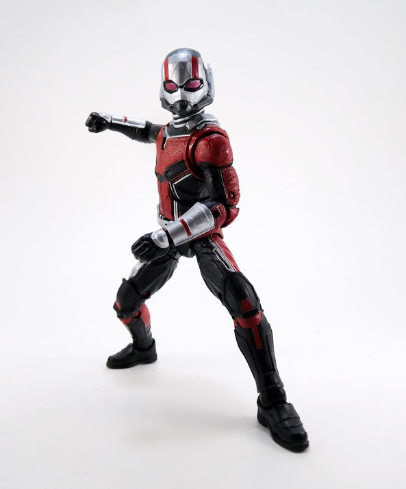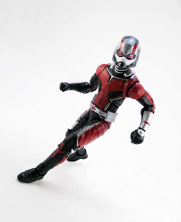 So, straight away I’ll say that I do prefer the Ant-Man costume from the original film over this one and the one that debuted in Civil War. This one feels even more streamlined than the last one and it’s not that I don’t like this one, I really do, but there was something extra cool about the more complex and less polished look of the original. The belt is a separate piece now, but there isn’t a whole lot of detail going on there. Most of the lines separating the red and black parts of the suit are part of the sculpt, which is always a big plus for me. You get the same mix of black, red, and silver as on the original, as well as that lovely texturing all over the suit. Overall, the coloring is nice and the paint application is pretty clean. There are a few lines where the silver could have been a wee bit sharper, but nothing terrible. And yes, there are some unpainted pegs in the knee and elbow hinges, so if that pisses you off… well, prepare to be pissed off, I guess.