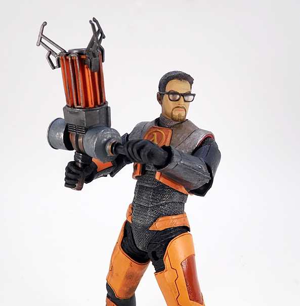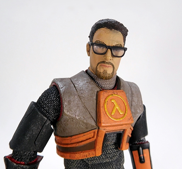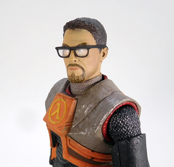 The portrait is excellent. This is definitely the slightly gruffer Gordon from HL2, but he hasn’t changed that much. He still sports the clean haircut and the neatly trimmed goatee. One of Gordon’s most iconic features has always been his nerd glasses and they are extremely well done here. Glasses on figures often come off as too large or bulky, but these are perfect. They’re cast in a separate piece, permanently attached to the head, and feature actual lenses. There’s a little bit of spray from the hair on his forehead, but it’s nothing too bad and looks more like dirt than anything else.