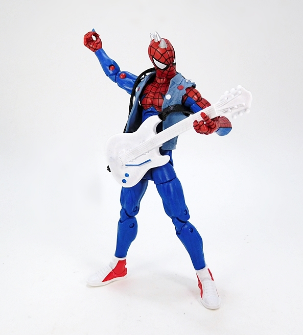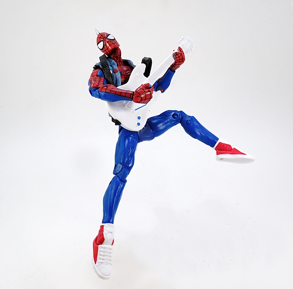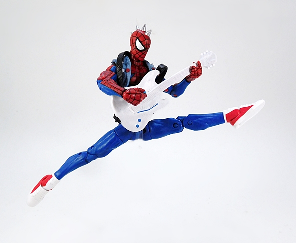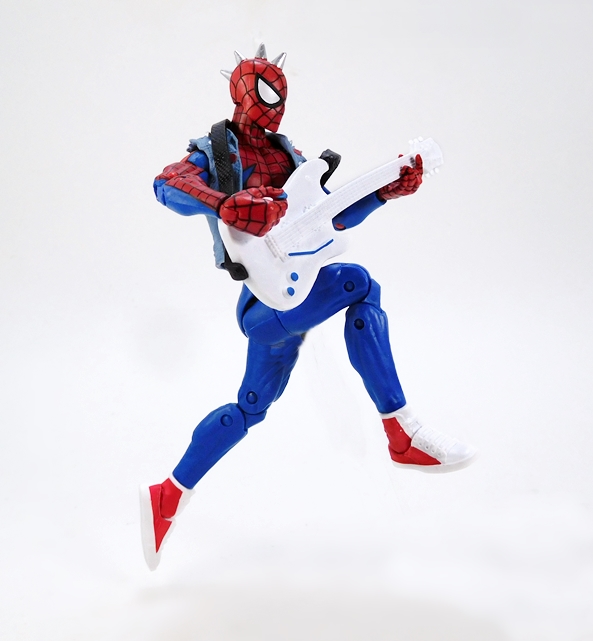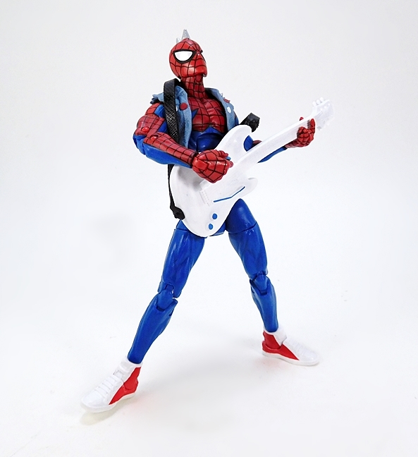 Obviously, you can’t have Spider-Punk without his trusty guitar and it is a seriously fun accessory. The mostly white guitar features a few blue paint apps and a black shoulder strap. The upper strap on mine pulled off the guitar after just a few poses, but it was easy to glue back into place. I would have really liked some more paint on the guitar to bring out some of the detail, but it’s still pretty damn cool.