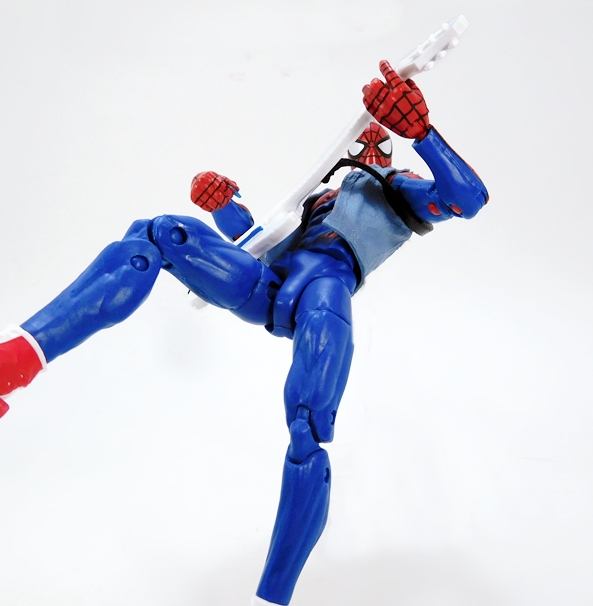 The bulk of Hobart’s costume is painted onto the buck, just like most Spider-Man figures. Here we get a beautiful combination of vibrant blue and red. The blue occupies most of the figure and forms a large spider emblem on the chest, while the red features the familiar web pattern. The paint on my figure looks great, but if unpainted pegs in the joints bother you, then you may be pissed to find that the elbow pegs on the interior of the arms have been left red. In a perfect world, I would have liked to see them match the surrounding blue, but this just isn’t something that I get all worked up about. You do get some original sculpting for the sneakers, which are white with red sides.