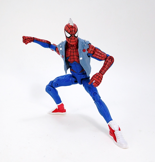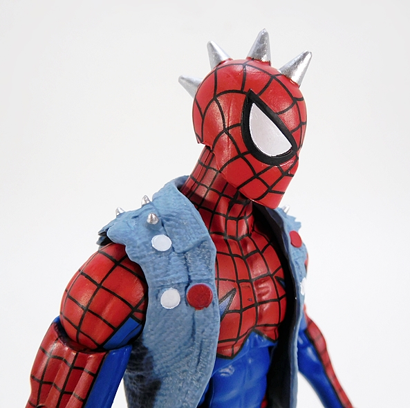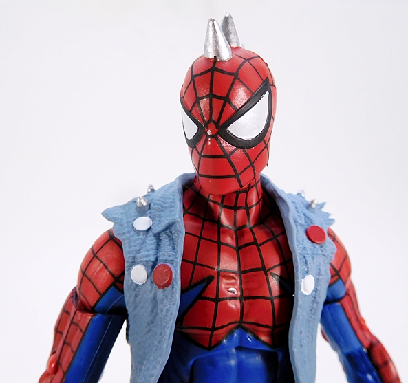 Of course, Spider-Punk also features his vest, which is sculpted in soft plastic and given a denim-like texture. The sleeves have been ripped off and there’s a patch sculpted on the back, as well as some stitch lines around it. The shoulders feature some silver spikes, and there are various red and white buttons sculpted onto the front flaps. Boy did Hasbro do a nice job on this one!