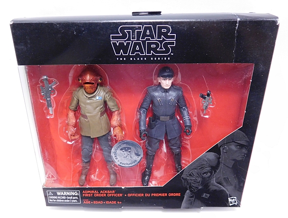 It’s weird to still have Toys R Us exclusives in play, what with the company folding this year. I didn’t get all emotional about TRU closing, because visiting the nearest one was a two-hour round trip and it was so poorly maintained that it was never worth the effort. Obviously, I’d rather they stayed open so people didn’t have to lose their jobs, but what can you do, eh? In any event, a few weeks back, I picked up this TRU Exclusive 2-pack on the cheap from Amazon, and I’m finally getting around to opening it up today. Let’s check out Admiral Ackbar and the First Order Officer!