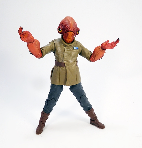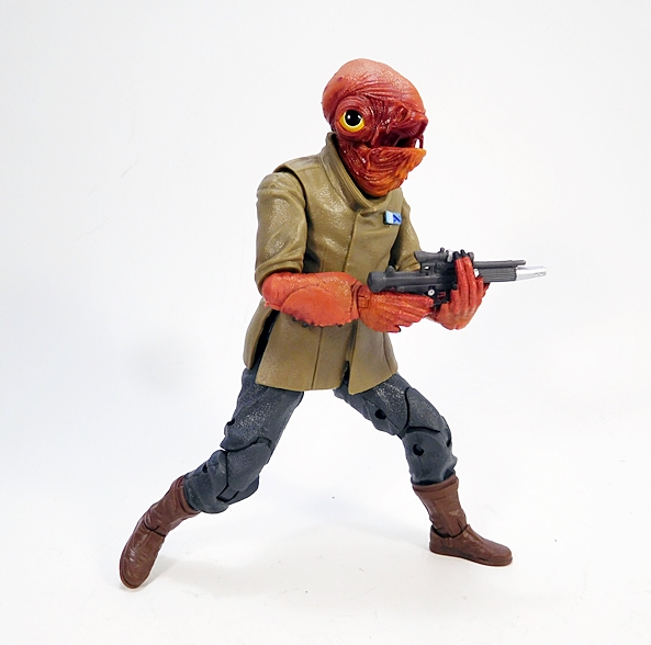 I’d like to think Ackbar was some kind of badass action hero in his younger days, but this is older Ackbar and as an Admiral, he doesn’t need to do much besides sit in a chair and bark orders. Still, he has decent articulation if you want to give him something more to do. Rotating hinges in his shoulders, elbows, and wrists allow him to do the standard, arms behind back pose that suits these officer-types so well. The legs are ball jointed in the hips, have double hinges in the knees, swivels in the thighs, and the ankles are both hinged and have lateral rockers. You get a ball joint in the torso, and the neck is ball jointed, but I don’t think there’s a hinge in there. As a matter of fact, I can’t get much movement out of his neck at all.