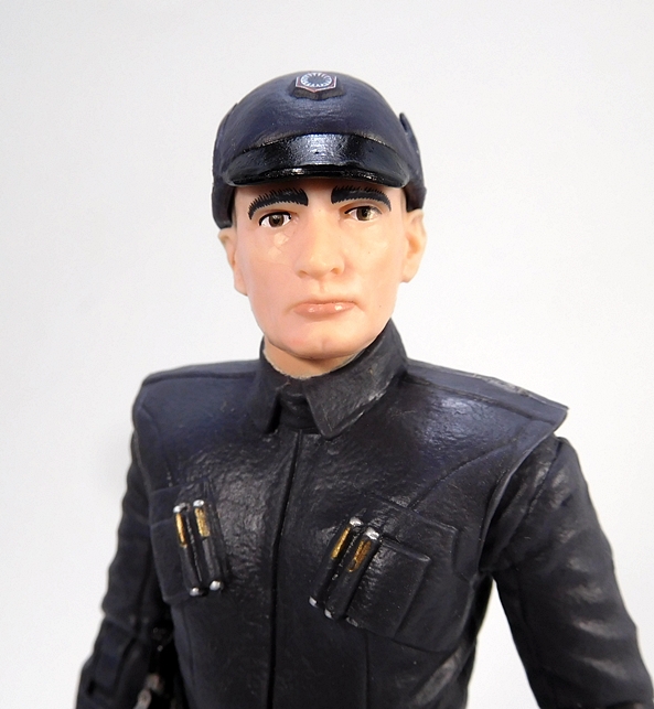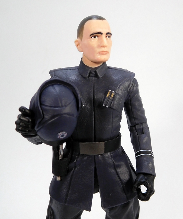 Much like Ackbar’s jaw, the First Order Officer also hides a pleasant surprise and that’s his removable cap! Under the cap, he’s just got a buzz cut painted on with no actual sculpted detail on the hair. But that’s fine, because it means the cap fits the head so well that I didn’t even think it was removable. Besides, the military style cut suits him.