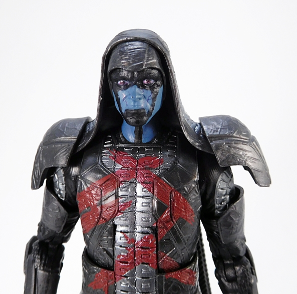 But it’s the head sculpt that really sells this figure, as Hasbro did a beautiful job on him. That probably shouldn’t come as any surprise, because as much as I rag on the mediocrity and poor likenesses of the 6-inch Black Series, they almost always do a fine job on the alien portraits. Ackbar here is certainly no exception. They recaptured Ackbar’s fishy noggin in every little detail. I’m especially impressed by the ribbed area round his lower face and those tendril-like whiskers that hang down from his nose. And as fantastic as the sculpt is, the paintwork elevates it even more. The glossy finish on the red gives him a bit of a wet look and the gradient shades of red make for a pleasingly complex finish. The eyes are also perfect.